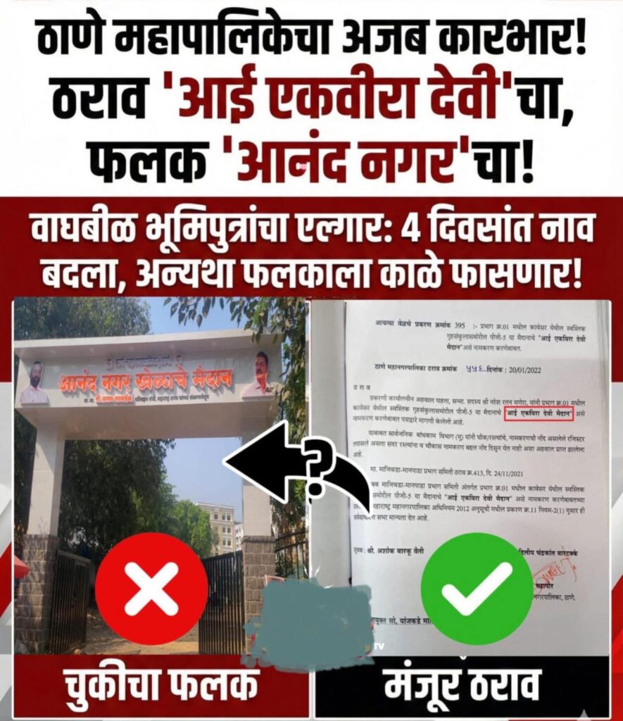 वाघबीळच्या भूमिपुत्रांचा एल्गार; ‘आनंद नगर’चा फलक हटवून ‘आई एकवीरा देवी’ नाव द्या, अन्यथा तीव्र आंदोलन ठाणे : सतिश पाटील घोडबंदर रोडवरील वाघबीळ-कावेसर परिसरातील एका आरक्षित…