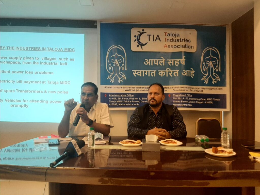 सिटी बेल | तळोजा | तळोजा इंडस्ट्रीज असोसिएशन (TIA) ने सुरेश गणेशकर-मुख्य अभियंता MSEDCL यांच्यासोबत हॉटेल तनिश रेसिडेन्सी, तळोजा MIDC येथे बैठक आयोजित केली होती.…