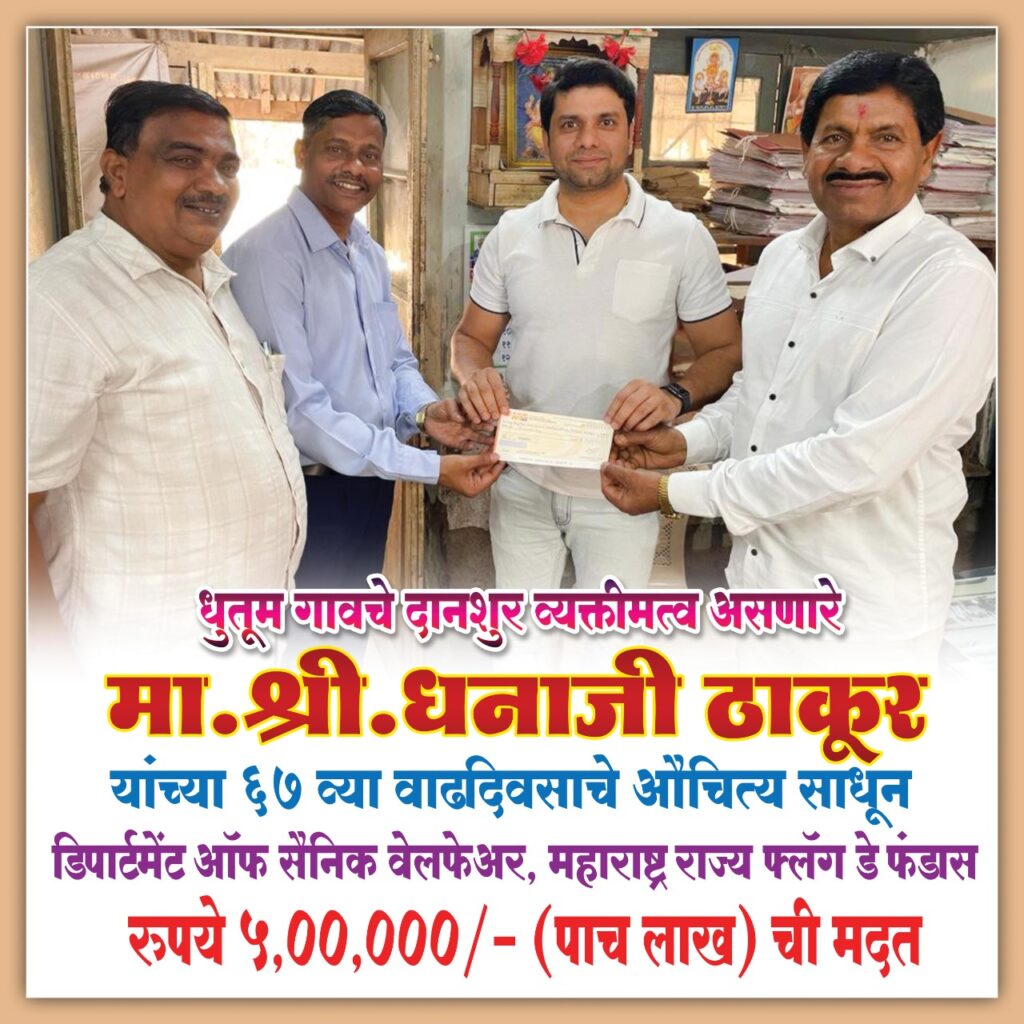 धनाजीशेठ ठाकूर यांनी डिपार्टमेंट ऑफ सैनिक वेलफेअर ला दिली ५ लाखांची देणगी सिटी बेल • उरण • धुतूम गावचे दानशुर व्यक्तीमत्व असणारे माजी सरपंच धनाजीशेठ…