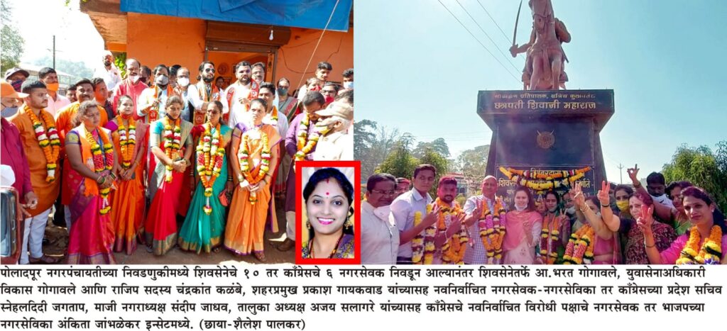 नगरपंचायत पोलादपूर येथे काँग्रेसने भाजपचे, राष्ट्रवादी काँग्रेसने काँग्रेसचे तर भाजपने काँग्रेसचे उमेदवार पाडल्याने शिवसेनेचा आश्चर्यकारक विजय : शिवसेना 10 – काँग्रेस – 6 तर भाजप…