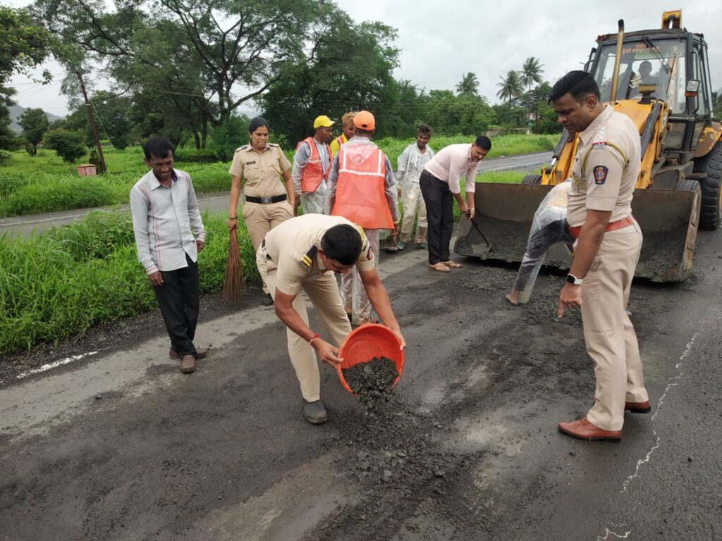 पोलीसांनी श्रमदान करुन भरले खालापूर फाटा ते शिळ फाटा रस्त्यावर पडलेले खड्डे सिटी बेल ∆ काशिनाथ जाधव ∆पाताळगंगा ∆ खालापूर फाटा ते शिळ फाटा रस्त्याची…