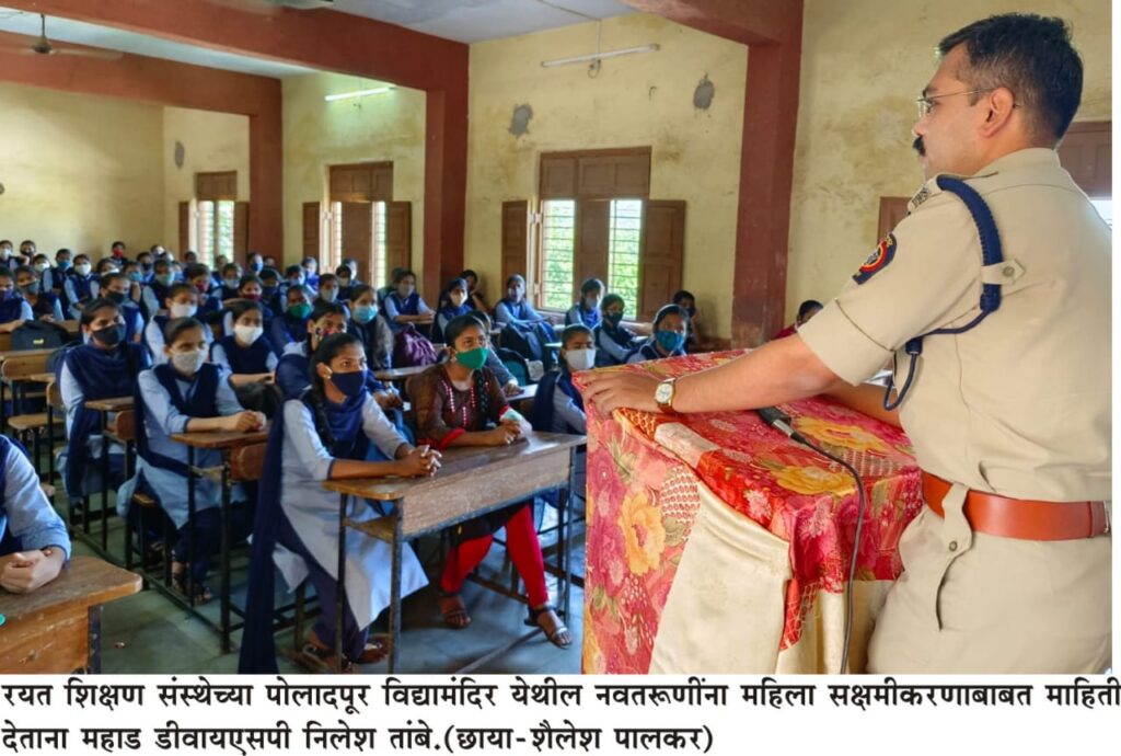 विद्यामंदिर पोलादपूरच्या नवतरूणींसोबत डीवायएसपी निलेश तांबे यांचा सुसंवाद सिटी बेल | पोलादपूर | शैलेश पालकर | समाजातील नातेवाईक, मित्रपरिवार तसेच आप्तशेजारी यांच्यापासून महिलावर्गाला विविध प्रकारच्या…