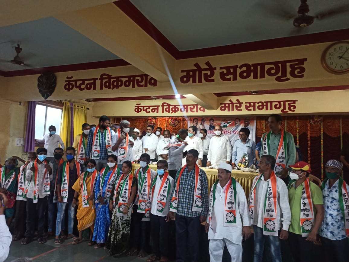 याप्रसंगी काँग्रेसचे महाळुंगेतील बाळकृष्ण चव्हाण आणि उपसरपंच सुभाष भागूराम साळवी यांच्यासह शेकडो महिला पुरूष कार्यकर्त्यांनी प्रवेश केला. तुर्भे बुद्रुकमधील नरेश शेलार व निशा शेलार यांच्यासह गोळे, बांदल, शेठ, शिंदे, उतेकर यांनी काँग्रेस पक्षातून राष्ट्रवादी काँग्रेस पक्षात प्रवेश केला. किनेश्वर शिववाडी येथील निवृत्ती पवार, गोपाळ भिलारे व अन्य ग्रामस्थांनी काँग्रेस पक्षातून राष्ट्रवादी काँग्रेस पक्षामध्ये प्रवेश केला. माटवण बौध्दवाडीतील शेकापक्षाच्या कार्यकर्त्यांनी राष्ट्रवादी काँग्रेस पक्षात जाहिर प्रवेश केला.