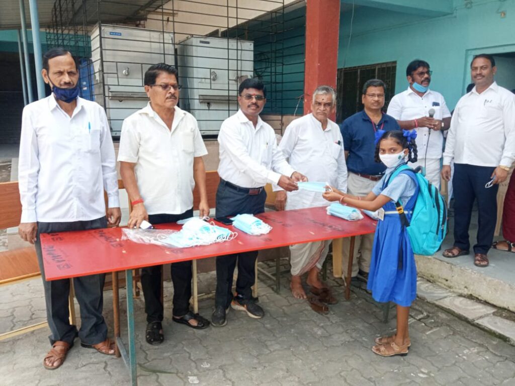 शाळेच्या पहिल्या दिवशी सुरुवातीस हजर असलेल्या विद्यार्थी – पालक यांचे शाळेच्या वतीने स्वागत केले. त्या नंतर या पुढे दररोज शाळेत विद्यार्थ्यांना यावे लागणार असल्याने त्यांना मास्क ची नितांत गरज लक्षात घेऊन शाळा व्यवस्थापन व विकास समितीचे अध्यक्ष श्री सुरेश पाटील यांनी स्वखर्चाने आपल्या मार्फत विद्यार्थ्यांना 500 मास्क चे वाटप केले.