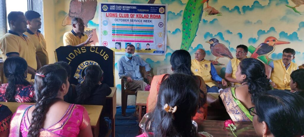 २ ऑक्टोबर ते ९ ऑक्टोबर दरम्यान इंटरनॅशनल लायन्सक्लब डिस्ट्रिक्ट ३२३१ A २रिजन ३झोन २ सन २०२१/२२ लायन्सक्लब ऑफ कोलाड रोहा चा सेवा सप्ताह दरम्यान विविध उपक्रम राबवले जात असून 4 ऑक्टोबर रोजी शालेय बेंच वाटपाचा कार्यक्रम संपन्न करण्यात आले.