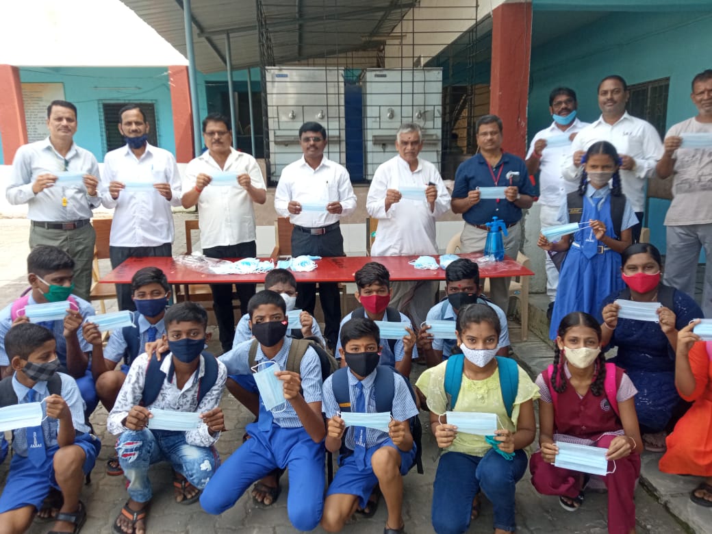 शाळेच्या पहिल्या दिवशी सुरुवातीस हजर असलेल्या विद्यार्थी – पालक यांचे शाळेच्या वतीने स्वागत करण्यात आले . त्या नंतर दररोज शाळेत विद्यार्थ्यांना यावे लागणार असल्याने त्यांना मास्क ची नितांत गरज लक्षात घेऊन शाळा व्यवस्थापन व विकास समितीचे अध्यक्ष सुरेश पाटील यांनी स्वखर्चाने आपल्या मार्फत विद्यार्थ्यांना 500 मास्क चे वाटप केले.ज्या काही विद्यार्थ्यांचे मास्क तुटके होते,खराब होते तर काहींनी मास्क परिधान केले नव्हते अशांना व इतर गरजू विद्यार्थ्यांना आपल्या सुरेश पाटील व शाळेचे उप प्राचार्य मा.पी.पी.मोरे, पर्यवेक्षक साळुंखे आर. एस.यांच्या हस्ते वाटप करण्यात आले .