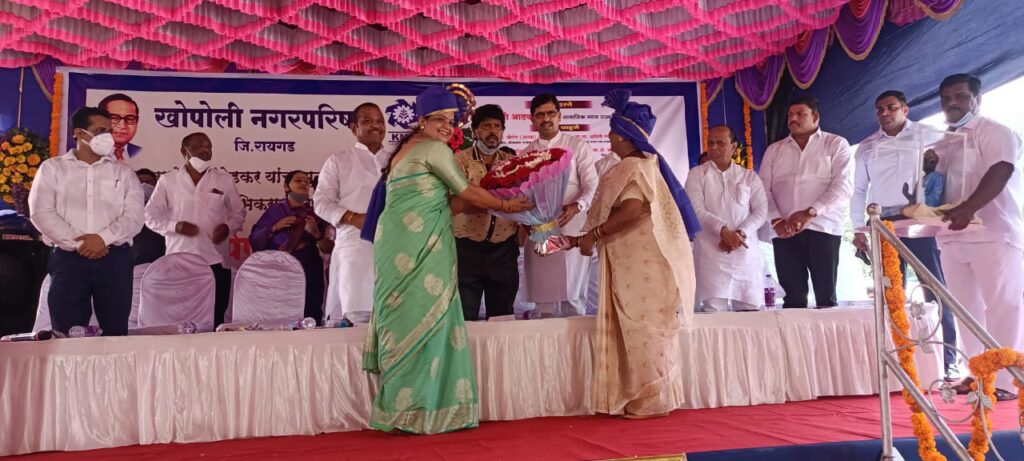 यावेळी नगराध्यक्ष सुमन औसरमल, उपनगराध्यक्ष विनीता कांबळे, माजी आमदार सुरेश लाड, जगदीश गायकवाड, दत्ताजी मसुरकर, धर्मानंद गायकवाड नरेंद्र गायकवाड व मान्यवर उपस्थित होते.