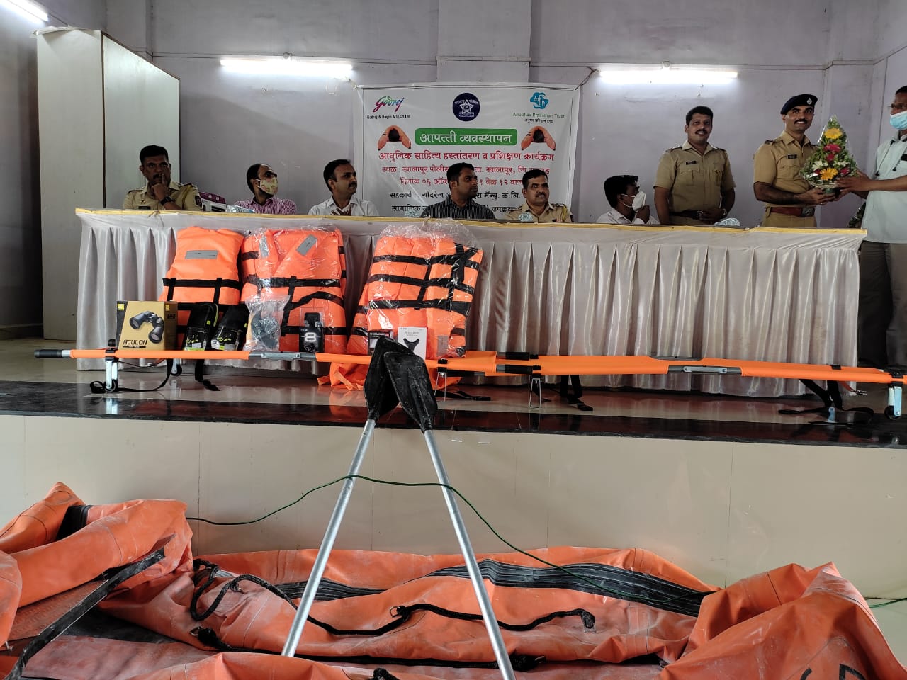 पोलीस प्रशासनाला चोवीस तास सावध राहावे लागत असून पावसाळ्यात अति उत्साही पर्यटकांना आवरणे कठीण होते अशा वेळी अपघात ग्रस्त मदत पथकासारख्या सामाजिक संस्था मदतीला येतात परंतु मानवी प्रयत्न तोकडे पडतात. त्यामुळे गोदरेज ने पुढाकार घेत आधुनिक आपत्कालीन दिलेले साहित्य फायदे शीर ठरणार असल्याचे पोलीस निरीक्षक अनिल विभुते यांनी सांगितले. आपत्कालीन साहित्य मध्ये बोट, लाईफ जॅकेट्स, दुर्बीण, वैद्यकीय आधुनिक साहित्य देण्यात आले आहे.