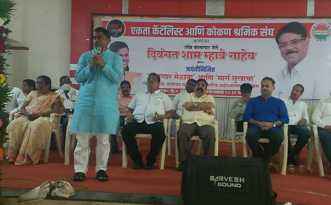 कामगार नेते श्याम म्हात्रे यांच्या जयंतीनिमित्त ते महात्मा फुले सभागृह ( आगारी समाज सभागृह) मध्ये बोलत होते. त्यांनी पुढे सांगितले श्याम म्हात्रे यांचे कामगार क्षेत्रात मोठे योगदान आहे. त्यांनी अपयशाची कधीही पर्वा केली नाही त्यामुळे कामगारागांचे भविष्य घडविताना सातत्याने संघर्षच केला आहे.यावेळी कामगार नेते दिनेश पाटील यांनी सांगितले श्याम म्हात्रे त्यांच्यातील गुण घेवून आम्ही कामगार क्षेत्रात यशस्वी झालो. त्यांचे जीवनच संघर्षमय होते. लोकनेते दि बा पाटील यांच्या समवेत त्यांनी अनेक लढे यशस्वी केले आहेत. श्याम म्हात्रे यांचा वारसा चालवायचा असेल पनवेल उरणमध्ये त्यांच्या जयंत्या साजरा करणे आवश्यक आहे. भिष्माचार्याच्या चरणावर डोके ठेवावे. त्याप्रमाणे श्याम म्हात्रे यांच्या सारख्या योद्धाला नमन करावेच लागेल.
