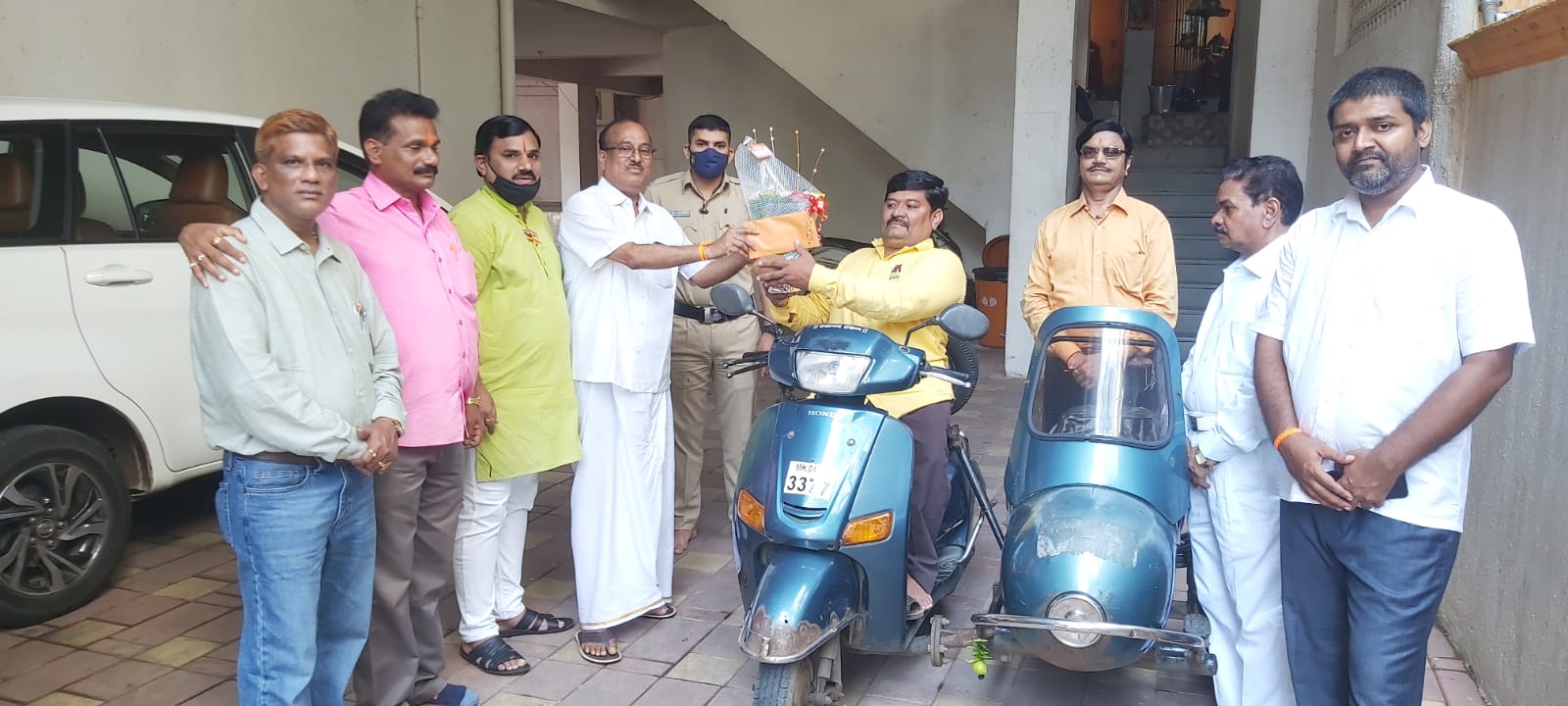 सध्याची परिस्थिती पाहता, विलंब न लावता जिल्हाप्रमुख शिरीष घरत यांनी त्यांचा मोडकळीस आलेला अपंग स्टॉल दुरूस्ती करण्यासाठी आर्थिक सहाय्य करून, त्यांचा बंद पडलेला व्यवसाय (रोजगार) पुनः सुरू करून दिला व शुभेच्छा दिल्या.