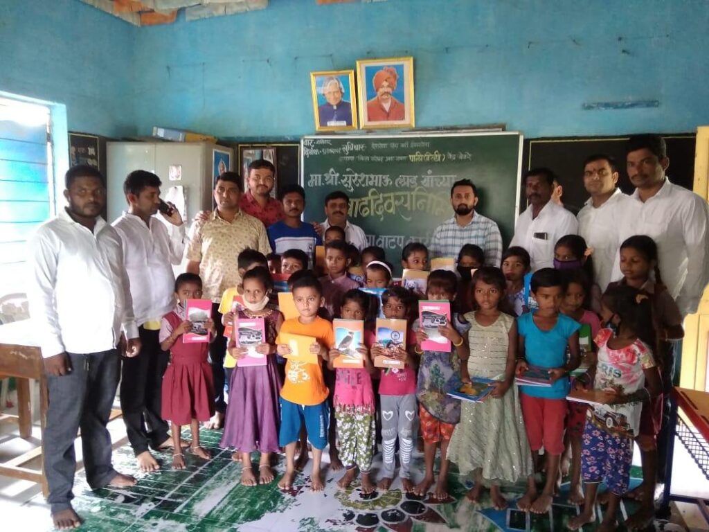 राष्ट्रवादी कॉग्रेस जिल्हा अध्यक्ष माजी आमदार सुरेश लाड यांच्या 65 व्या वाढदिवसानिमित्त जिल्हा परिषदेच्या प्राथमिक शाळेतील गरजू विद्यार्थींना वह्या वाटप करण्यात आल्या.