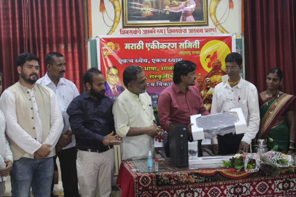 यावेळी संघटना अध्यक्ष गोवर्धन सखाराम देशमुख, कार्याध्यक्ष.प्रदिप जयराम सामंत, रायगड जिल्हाध्यक्ष प्रमोद सुधाकर पार्टे तसेच संघटनेचे शिलेदार उपस्थित होते.मराठी एकीकरण समिती जिल्हा रायगड यांच्या वतीने सामाजिक बांधिलकी जपत राबविण्यात आलेल्या या अभिनव उपक्रमाचे समाजातील विविध स्तरातून स्वागत करण्यात येत आहे.