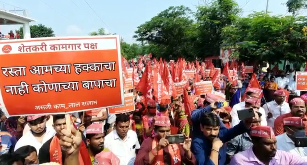 या मोर्चात शिवसेना आमदार महेंद्र दळवी यांनी रस्ता स्वतःच्या खर्चात बनवून देणार असल्याच्या आश्वासनाची ऑडिओ क्लिप देखील वाजवली. खड्डे, दगडगोटे, चिखल यामुळे या जीवघेण्या मार्गावरून प्रवास करणे अत्यंत कठीण झाले आहे. सदर रस्त्याचे डांबरीकरण व मजबुतीकरण होऊन मार्ग सुस्थितीत यावा व जनतेचा प्रवास सुखकर व सुरक्षित व्हावा यासाठी शेेतकरी कामगार पक्षाच्या वतीने आ जयंत पाटील यांच्या नेतृत्वात व महिला आघाडी प्रमुख चित्रलेखा पाटील यांच्या उपस्थित रास्ता रोको आंदोलन करण्यात आले.
