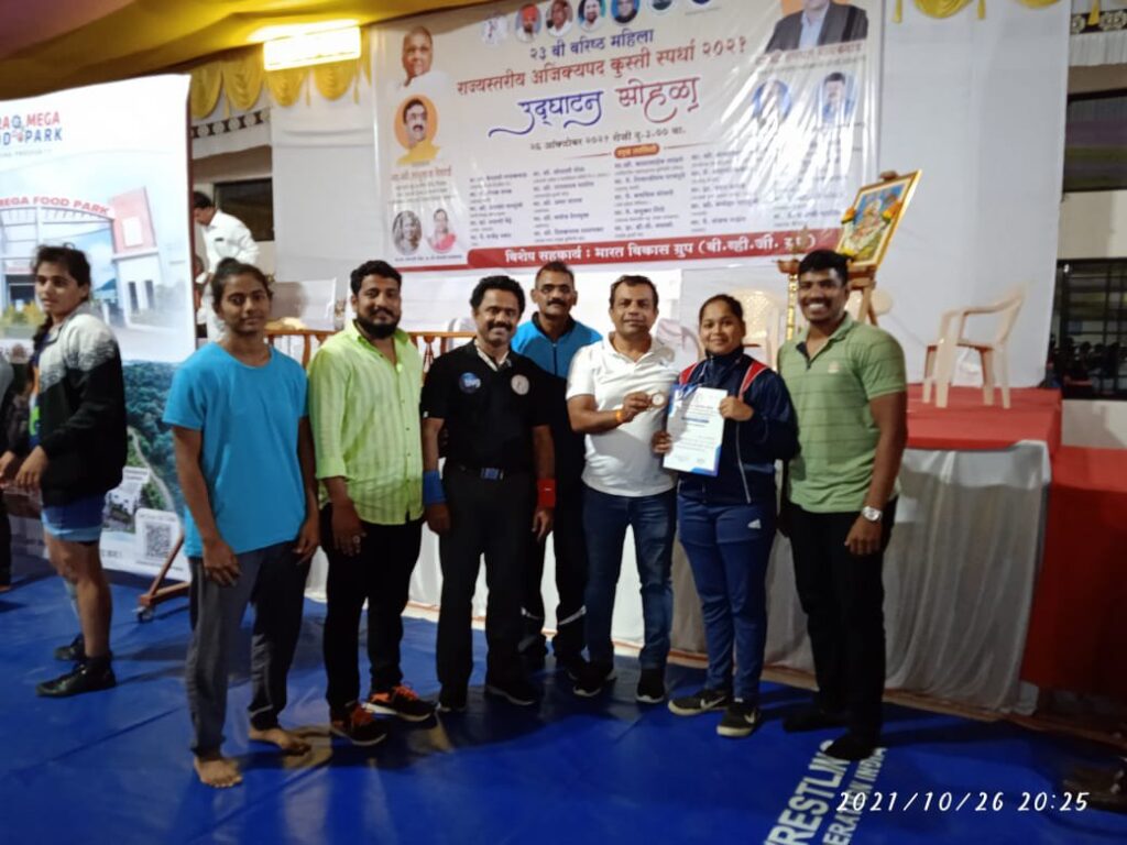 महाराष्ट्र राज्य कुस्तीगीर परिषदेच्या मान्यतेने, एन. बी. ग्रुप व निकाळजे ग्रुप पुरस्कृत, विकास ग्रुप यांच्या विशेष सहकार्याने 23 वी वरिष्ठ महिला राज्य अजिंक्यपद कुस्ती स्पर्धा 2021 ही सातारा येथे संपन्न झाली. या स्पर्धेत 65 किलो वजनी गटांमध्ये कू. प्राची भोईर या कुस्तीपटूने ब्राँझ मेडल प्राप्त केले आहे.