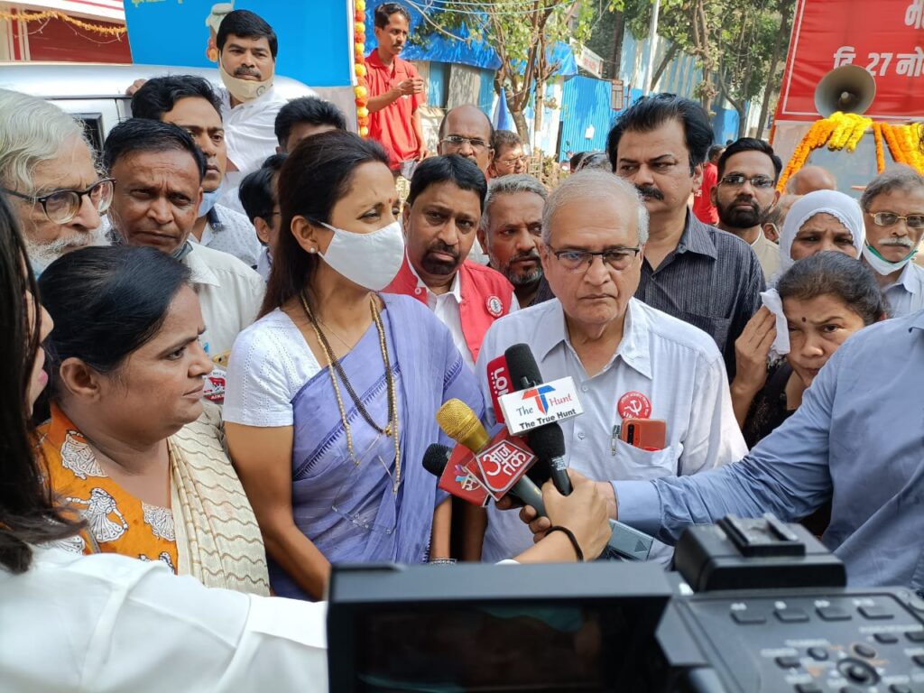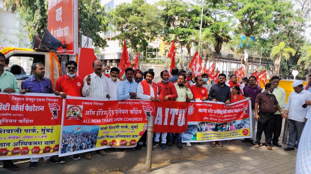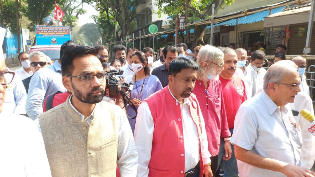 महाराष्ट्र स्टेट इलेक्ट्रिसिटी वर्कर्स फेडरेशनचे भांडुप, कल्याण,नाशिक,वाशी पारेषण झोन व मुख्य कार्यालय झोन मधील पदाधिकारी व सभासद यांनी आपल्या संघटनेचे बॅनर व झेंडे घेऊन फोरव्हिलर गाड्या घेवून शिवाजी पार्क दादर मुंबई येथे सरचिटणीस कॉम्रेड कृष्णा भोयर,उपसर्चिटणीस अरुण मस्के,संयुक्त सचिव कॉंग्रेस लिलेश्वर बनसोड, महिला आघाडीच्या अध्यक्षा कॉम्रेड भारती भोयर,केंद्रीय सल्लागार धनवटे मामा,केंद्रीय कार्यकारिणी सदस्य गोरखनाथ पवार,शंकरदादा कोंडी लकर,आयटक ठाणे जिल्हा सचिव कॉम्रेड जनार्धन पाटील,भांडुप झोन सचिव विजय नाटकी, उपाझोनल सचिव सचिव जगदीश म्हात्रे, राजेश अहिरे,बुवा,राहुल मुळे, वाशी पारेषण झोन अध्यक्ष सुरेशस पवार,सचिव दिलीप पाटील, वाशी मंडळ सचिव शशिकांत मात्रे,कल्याण मंडळ सचिव सतीश म्हात्रे,महादेव गायकवाड, नाशिक सर्कल सचिव दिपक गांगुर्डे,सतीश पाटील,कॉम्रेड एस.आय.खान,विभागीय सचिव सतिष पाटील,योगेश साळवी, रितेश चव्हाण,दिपक दामधर, अतुल चव्हाण,रवींद्र सिंग चव्हाण,स्वप्निल राणे, अशोक बामगुडे व दिनेश पाटील, मुख्य कार्यालय झोनचे प्रतिनिधी कॉम्रेड विनोद गायकवाड इत्यादी पदाधिकारी सहभागी झाले होते.
