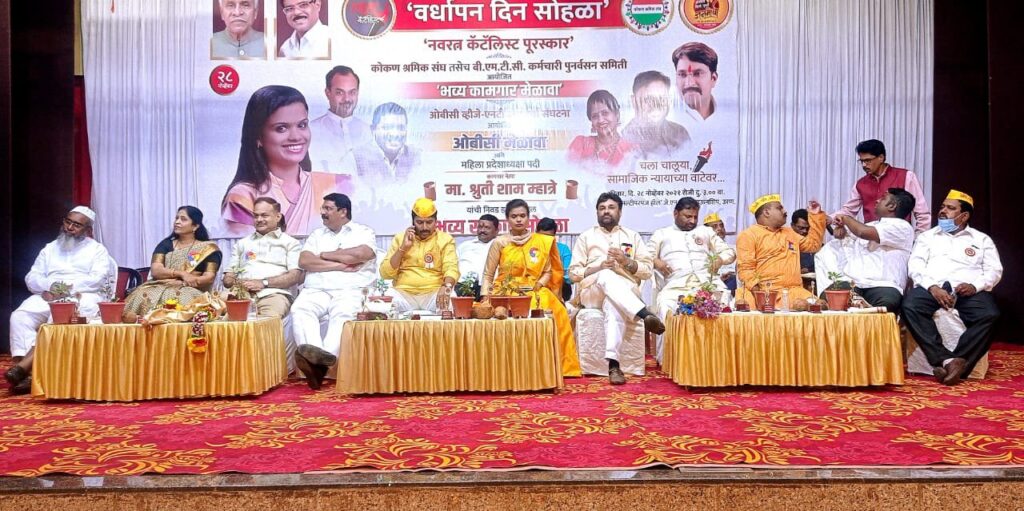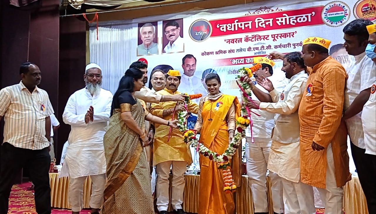 या कार्यक्रमात कामगार नेत्या श्रुती म्हात्रे यांच्या एकता कॅटॅलिस्ट मार्फत भगवान माळी ,संजीवन म्हात्रे,देवीदास थळे, यांना “नवरत्न कॅटॅलीस्ट पुरस्कार” देवून सन्मानीत करण्यात आले.