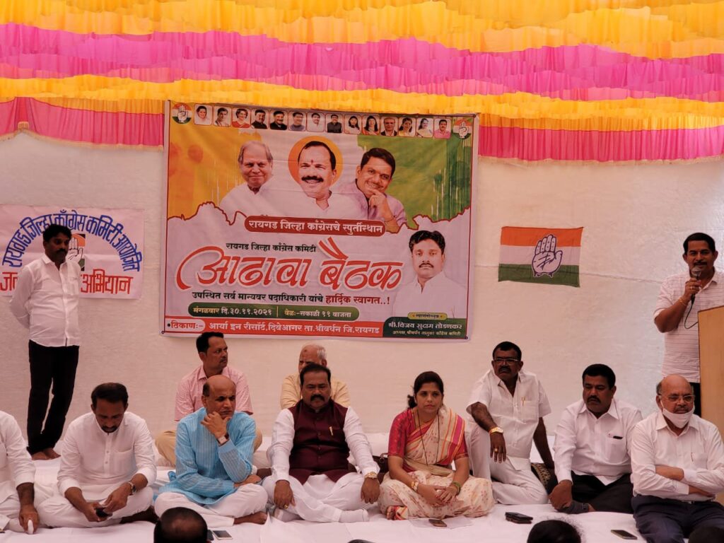 रायगड जिल्हा कॉंग्रेस कमिटीची आढावा बैठक जिल्हाध्यक्ष महेंद्रशेठ घरत यांच्या अध्यक्षतेखाली दिवेआगर येथील आर्या इन रिसोर्ट येथे पार पडली. या बैठकीत जनजागरण अभियान, सदस्य नोंदणी अभियान, युथ कमिट्या व होऊ घातलेल्या ६ नगरपंचायती निवडणूकी विषयी मार्गदर्शन करण्यात आले.