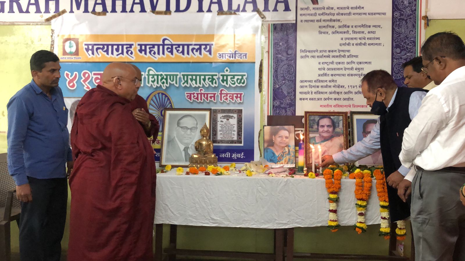 महाष्ट्रातील नागपूर, पुणे, मुंबई आणि नांदेड येथील रामानंद तीर्थ स्वामी विद्यापीठातून पाली भाषा विषयात पी. एचडी प्राप्त डॉ काश्यपायन, डॉ राहुल बोधी यांचा भारताचे संविधान पुष्प गुच्च आणि सन्मान चिन्ह देऊन प्रोफेसर डॉ. टी. आर. घोबळे, रत्नमाला डोंगरगावकर यांच्या हस्ते गौरव करण्यात आला . संस्थेच्या 40 वर्षातील वाटचालीचा लेखजोखा मांडला. 2 अनुदानित आणि 8 सेल्फफंडेड शाळा, 3 पदवी महाविद्यालय, 4 वसतिगृह, 1 संशोधन केंद्र आणि संस्थेच्या वतीने निशुल्क वितरणासाठी बुद्ध आणि त्याचा धम्म या सह 11 सामाजिक न्यायाशी निगडित ग्रंथ प्रकाशन करण्यात आले आहेत.लातूर आणि रायगड जिल्ह्यात संस्थेचे जाळे पसरले आहे 3000 पेक्षा जास्त विद्यार्थी शिक्षणाचा लाभ घेत आहेत असे प्राचार्य वनिता सूर्यवंशी म्हणाल्या. पीएचडी संशोधकाच्या वतीने डॉ .काश्यपायन यांनी पाली भाषेची जगभरातील अवस्था आणि भारतातली स्थिती बाबतचे मार्मिक चिंतन शील विचार मांडले, काश्यपायन म्हणाले पाली भाषेला लोक मान्यता आहे सरकार पाली भाषेचा दुजाभाव करते. संस्कृत, उर्दू आणि इग्रजी भाषा अभ्यासाचे स्वतंत्र विश्वविद्यालये आहेत मात्र पाली भाषेच्या विद्यापीठाकडे सरकारचा कान-डोळा आहे. सरकारने पाली भाषा शालेय स्थरावर करून जगातला कलह मिटवण्याची शिकवण द्यावी. संस्थेने आमचा गौरव करून धन्यताव्यक्त केली सर्व सत्कार-मूर्तीच्या वतीने ऋण निर्देश केले. समारंभाचे अध्यक्ष विचारवंत डॉ. जी. के. डोंगरगावकर यांनी संस्थेच्या दिवंगत सहकार्यत रामराव गुरुजी, शांताबाई हाडोळतीकर, आणि राजश्री आनंत यांचं संस्थेतील योगदान विस्मरणीय असल्याचे म्हणाले. विचाराबरोबरच स्वयं उत्पन्नातून संस्थेला आर्थिक मदत केली. यामुळेच संस्थेच्या कामाला गती मिळाली .