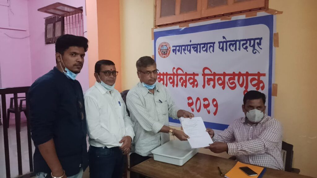 नगरपंचायत पोलादपूरच्या दुसऱ्या पंचवार्षिक निवडणुकीसाठी आज काँग्रेस पक्षातर्फे सर्वाधिक 10 उमेदवारी अर्ज दाखल करण्यात आले. भारतीय जनता पक्षातर्फे 6 उमेदवारी अर्ज, शिवसेनेतर्फे 2 तर अखिल भारतीय सेनेतर्फे 1 उमेदवारी अर्ज दाखल करण्यात आला आहे. मंगळवारी शेवटच्या दिवशी सर्वच राजकीय पक्षांतर्फे उमेदवारी अर्ज दाखल करण्यात येणार असल्याने अंतिम मुदत उद्या सायंकाळी 5 वाजेपर्यंत निश्चित करण्यात आल्याची माहिती सहायक निवडणुक निर्वाचन अधिकारी तथा मुख्याधिकारी महादेव रोडगे यांनी दिली. सोमवारी एकही अर्ज दाखल न करणाऱ्या राष्ट्रवादी काँग्रेस पक्षासोबत काँग्रेसची आघाडी झाल्याने काँग्रेसचे आव्हान अधिकच वाढले आहे.