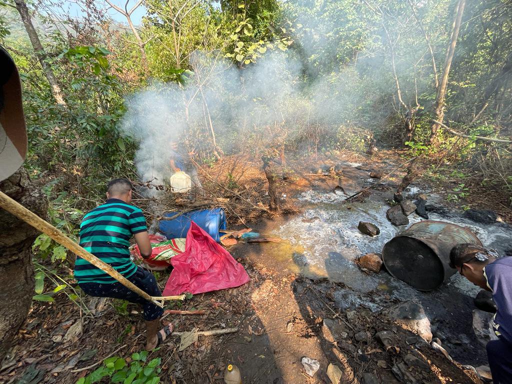 यात बेवारस स्थितीत मिळून आलेले 200 लिटर क्षमतेची दोन पत्र्याच्या टाकीमध्ये तांबड्या रंगाचे उग्र वास येत असलेले एकूण 200 लिटर रसायन मिळून आले.सदरील रसायन जागीच ओतून नाश करून नष्ट केले.व पत्र्याची टाकी तोडून नुकसान केले.