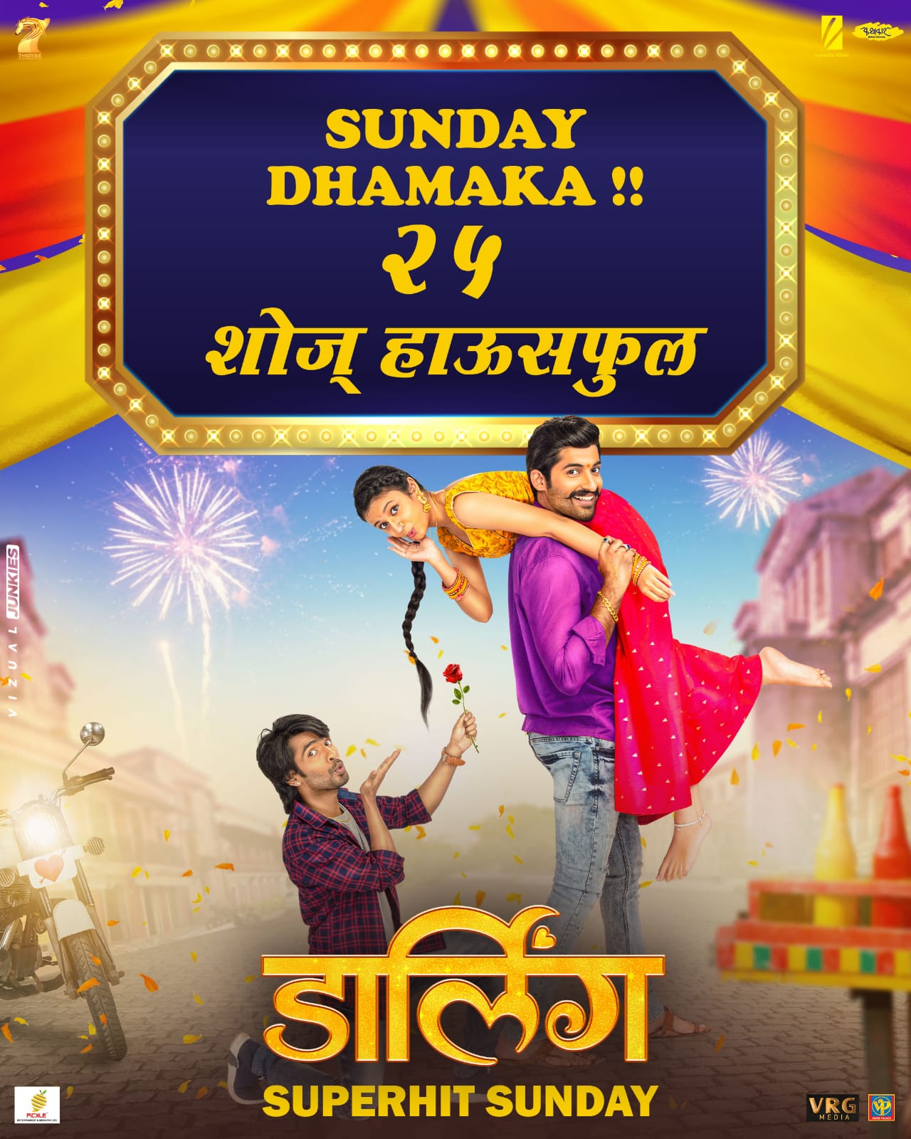 रसिक पुन्हा एकदा प्रथमेश-रितिका यांच्या अफलातून केमिस्ट्रीवर फिदा झाल्यानं संपूर्ण महाराष्ट्रात समीर आशा पाटील दिग्दर्शित ‘डार्लिंग’ या चित्रपटानं अक्षरश: धुमाकूळ घातला आहे. अ स्ट्रेस बस्टर फॅमिली एन्टरटेनर हि ‘डार्लिंग’च्या पोस्टरवर देण्यात आलेली टॅगलाईन मराठी सिनेरसिकांनी खरी ठरवली आहे. ‘डार्लिंग’ मिळणाऱ्या प्रतिसादाचं संपूर्ण श्रेय चित्रपटाच्या टिमनं रसिक मायबाप यांना दिलं आहे.