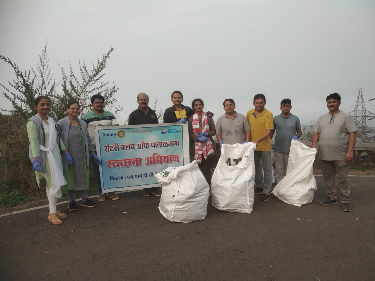 रोटरी क्लब पाताळगंगा तर्फे एम्. आय. डि. सी. टेकडीवर स्वच्छता अभियान राबविण्यात आले. सर्व परिसर स्वच्छ करण्यात आला. प्लास्टिक पिशव्या, काचेच्या बाटल्या कचरा गोळा करण्यात आला.