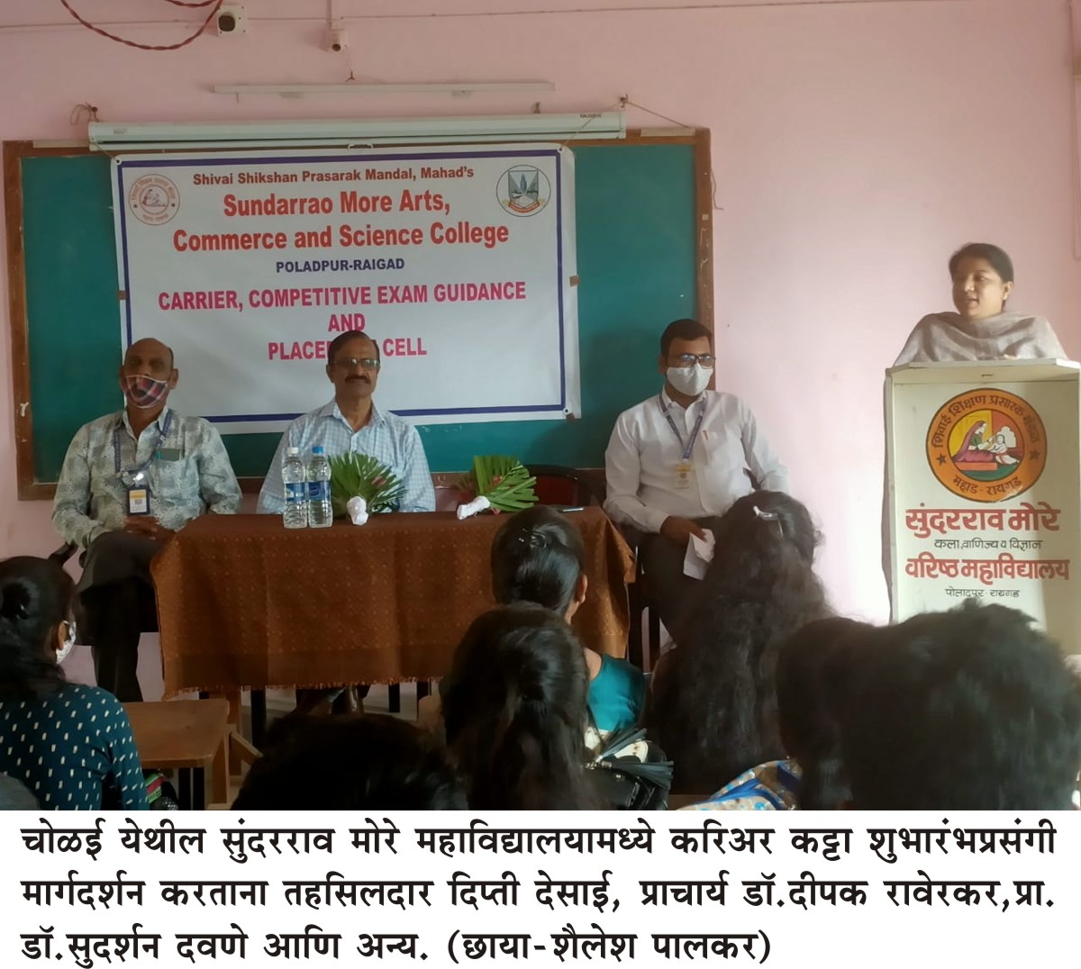 पोलादपूर तहसीलदार दिप्ती देसाई यांनी, ग्रामीण भागातील असल्याने कुटुंबाला फारशी शैक्षणिक पार्श्वभूमी नाही, असा कोणत्याही प्रकारचा न्यूनगंड न बाळगता विद्यार्थ्यांनी महाविद्यालयीन जीवनापासूनच एमपीएससी, यूपीएससी तसेच बँकिंग आणि इतर क्षेत्रातील स्पर्धा परीक्षांची माहिती करून त्यांचा नियोजनबध्द अभ्यास केल्यास अनेक प्रकारच्या उत्तम करिअर विषयक संधी त्यांना मिळू शकतील असे मत व्यक्त केले.