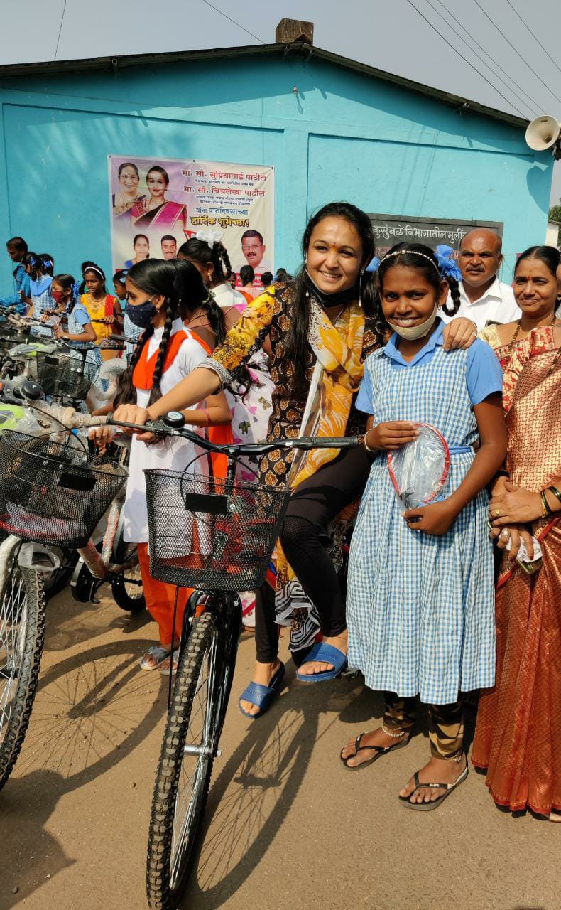 कुसुंबळे येथील 117 मुलींना सायकलींचे वाटप मान्यवरांच्या हस्ते करण्यात आले.