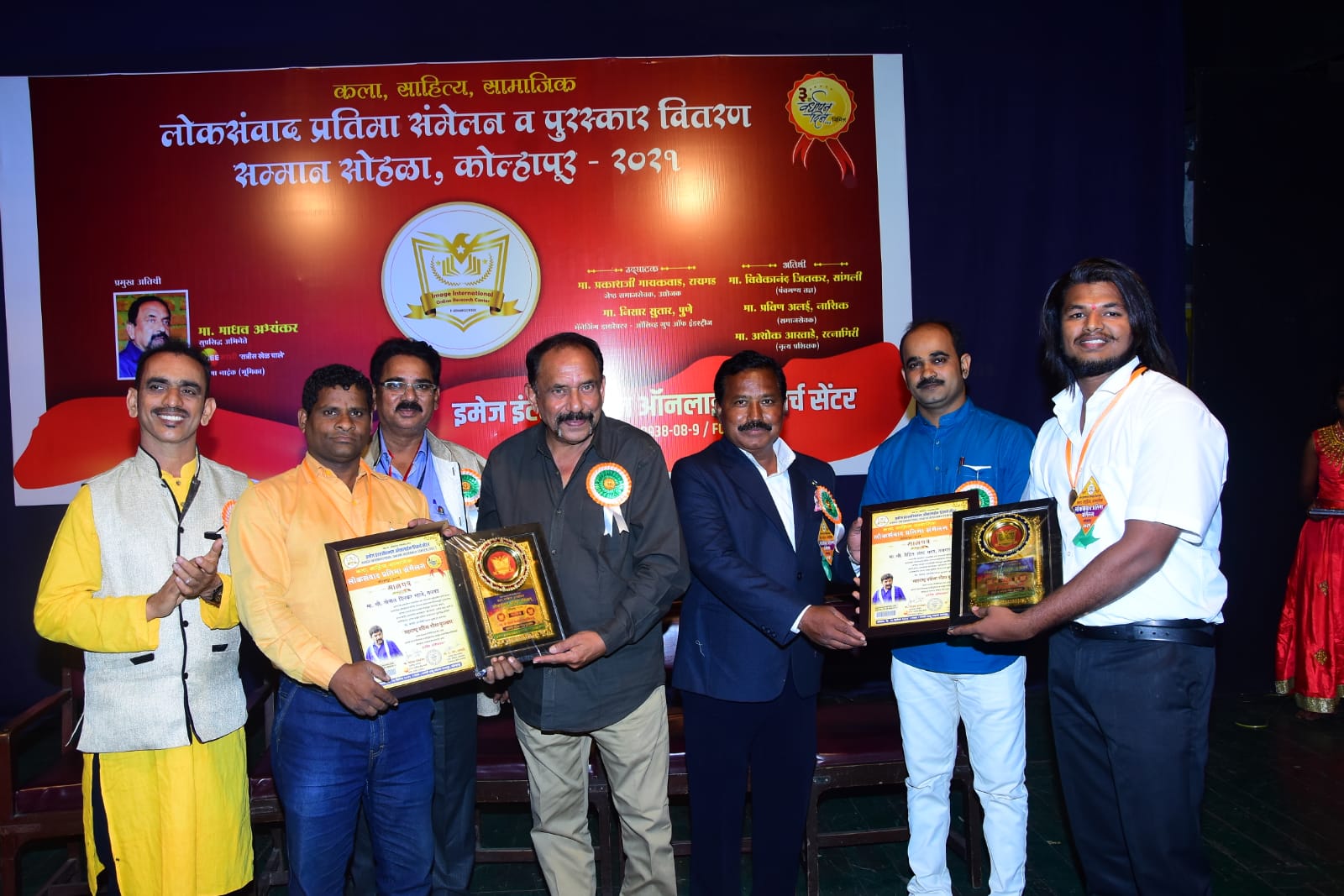 इमेज इंटरनॅशनल ऑनलाइन रिसर्च सेंटर व समृद्धी प्रकाशन सिंधुदुर्ग यांच्या वतीने लोकसंवाद प्रतिमा संमेलन यांच्या तिसऱ्या वर्धापनदिनानिमित्त प्रतिभावंतांचा पुरस्कार सोहळा कोल्हापूर येथे पार पडला.