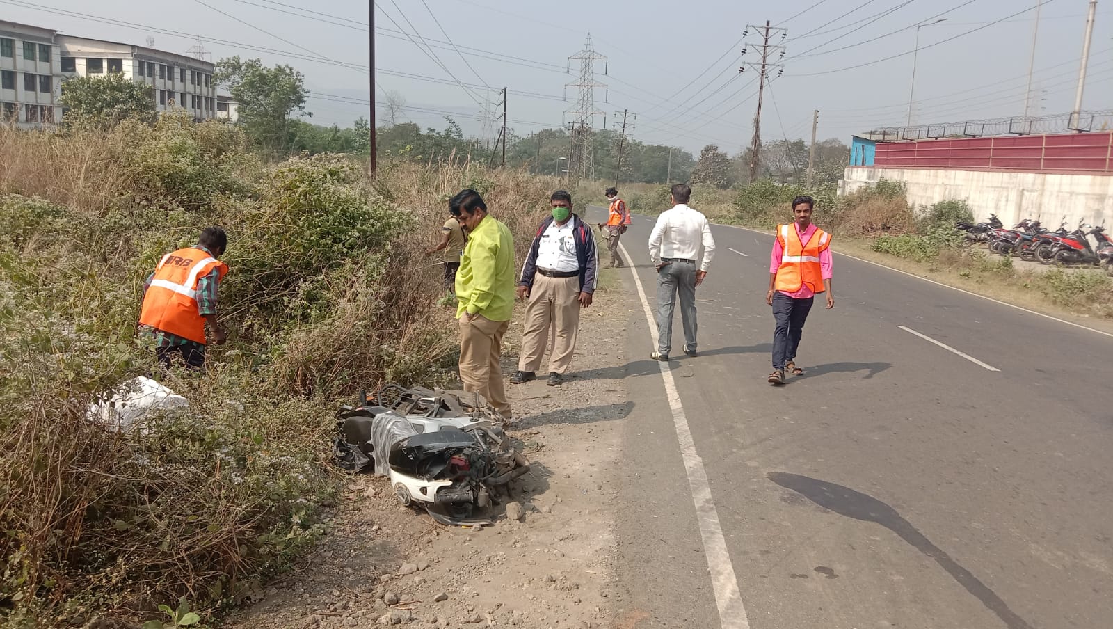 पोलीस,वाहतुक,आय.आर.बी यांच्या माध्यमातून रस्त्यालगत वाढलेले गवतांची छाटणी