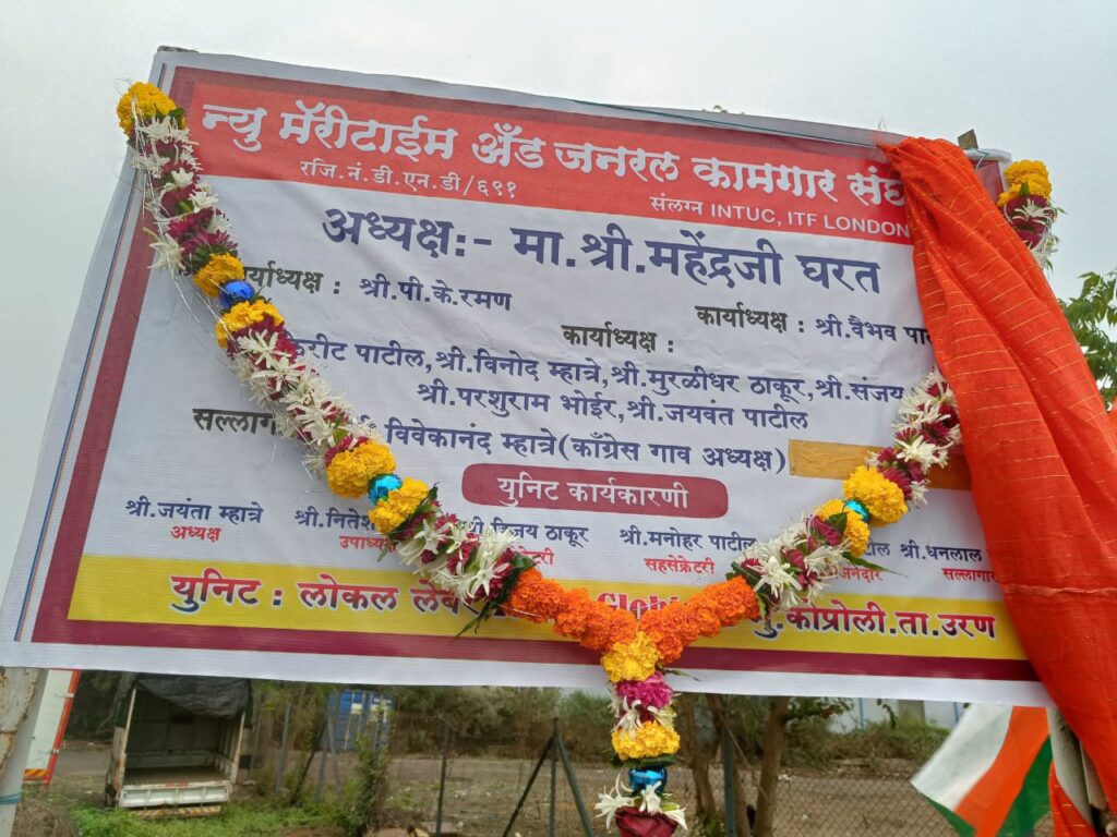 NMGKS संघटनेची वाटचाल अखंडीतपणे सुरु आहे. २०२२ नविन वर्षाच्या सुरुवातीसच कोप्रोली – उरण येथील ग्लोबीकॉन (ICTPL) लॉजिस्टीक पार्क या कंपनीत लोकल लेबर कामगारांनी रायगड जिल्हा कॉंग्रेस अध्यक्ष, कामगार नेते महेंद्र घरत यांच्या नेतृत्वातील न्यु मॅरीटाईम अॅन्ड जनरल कामगार संघटनेचे सभासदत्व स्विकारले आहे. संघटनेच्या नामफलकाचे अनावरण करण्यात आले.