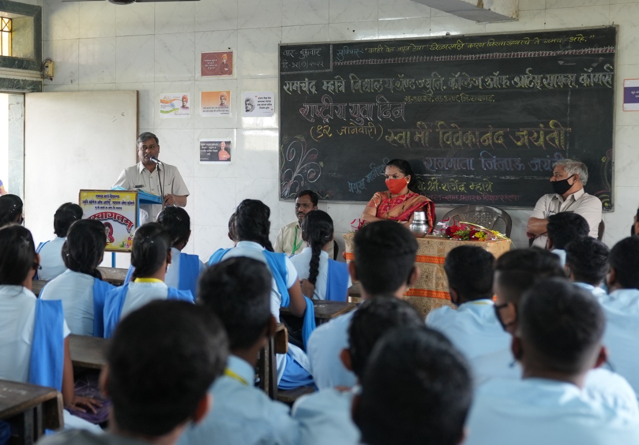 या प्रसंगी प्राचार्य राजेंद्र म्हात्रे यांनी राजमाता जिजाऊ यांच्या कार्याची महती पटवून दिली. छत्रपती शिवाजी महाराजांना हिंदवी स्वराजाची प्रेरणा देऊन ते उभे करण्यासाठी सातत्याने प्रयत्न केले. तसेच स्वामी विवेकानंद यांनी अध्यात्मिक, सामाजिक क्षेत्रात केलेले कार्य, स्वामींचे आदर्श व्यक्तिमत्व, देशभक्ती अशा विविध क्षेत्रात केलेल्या योगदानाची माहिती दिली.