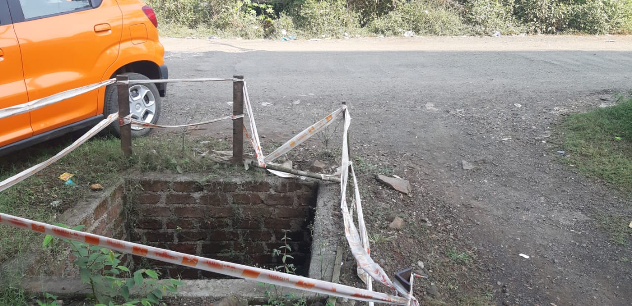 मोहोपाडा एमआयडीसी हद्दीतील आदित्य लॅबसमोरील उघड्या चेंबरमुळे अपघाताचा धोका