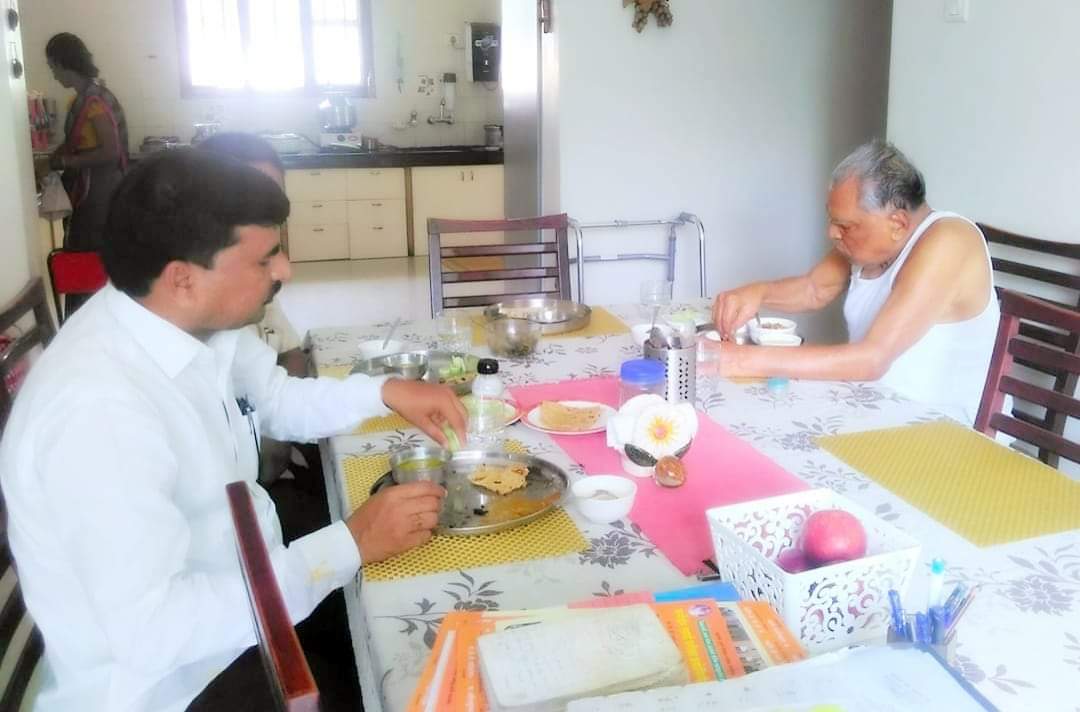 घराच्या दारात पोहचताच माई (अर्थात साहेबांच्या पत्नी सरोजिनी पाटील आम्ही त्यांना आदराने माई संबोधतो) दारातच उभ्या होत्या माझ्यावर खुपच रागावलेल्या होत्या मोठ्या आवेशात म्हणाल्या आकाशभाई तुम्हाला काहीच कळत नाही का? साहेबांची तब्येत आताच कुठे थोडीफार बरी झाली आहे डॉक्टरांनी सांगितले आहे वेळेवर जेवण, नाश्ता व औषधगोळ्या घेत म्हणुन आणि साहेब तुम्ही येणार आहात म्हणून साहेबांनी अजुन नाश्ता जेवण केले नाही जेवण दिले होते तर ते म्हणतात की निर्मळ आणि बोराडे आल्यावर मी त्यांच्या सोबतच जेवणार आहे विश्वास नसेल तर आत जाऊन बघा तुमच्या तिघांना वाढलेली जेवणाची ताटं तशीच टेबलावर झाकून ठेवले आहेत.