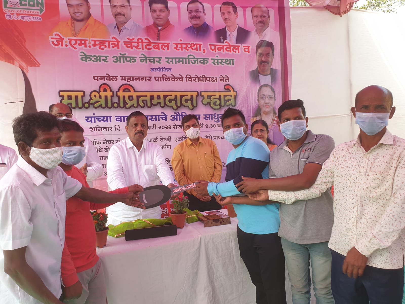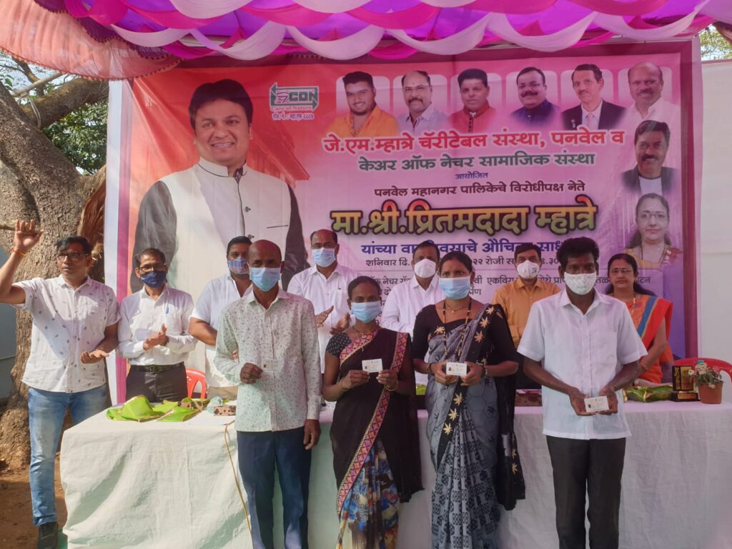जे एम म्हात्रे चॅरिटेबल ट्रस्ट संस्था पनवेल व केअर ऑफ नेचर सामाजिक संस्था उरण यांच्या संयुक्त विद्यमाने पनवेल महानगर पालिकेचे विरोधी पक्षनेते प्रीतम म्हात्रे यांच्या वाढदिवसाचे औचित्य साधून उरण तालुक्यात विविध सामाजिक उपक्रम राबविण्यात आले. केअर ऑफ नेचर रॉक ऍनिमल पार्क वेश्वि एकविरा डोंगर येथे प्राण्याच्या पुतळ्यांचे उदघाटन, रानसई येथे दोन रुग्णवाहिकेचे लोकार्पण, आय लव्ह रानसई नावाचे लोकार्पण,150 आदिवासी लोकांना ई श्रम कार्ड पॉलिसी वाटप, आदिवासी आश्रम शाळा चिरनेर येथे आदिवासी मुलांना मोफत कराटे क्लासेसची सुरवात आदि विविध सामाजिक उपक्रम विरोधी पक्षनेते प्रीतम म्हात्रे यांच्या वाढदिवसानिमित्त उरणमध्ये राबविण्यात आले. यावेळी उद्योजक महेश मारुतीराव पवार व महिला सामाजिक कार्यकर्ते संगीता सचिन ढेरे यांचा विशेष सत्कार करण्यात आला.
