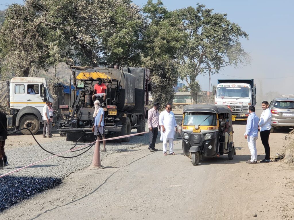 काँग्रेस जिल्हाध्यक्ष महेंद्र घरत यांच्या पासठपुराव्यामुळे जासई-गव्हाण रस्त्याची दुरुस्ती