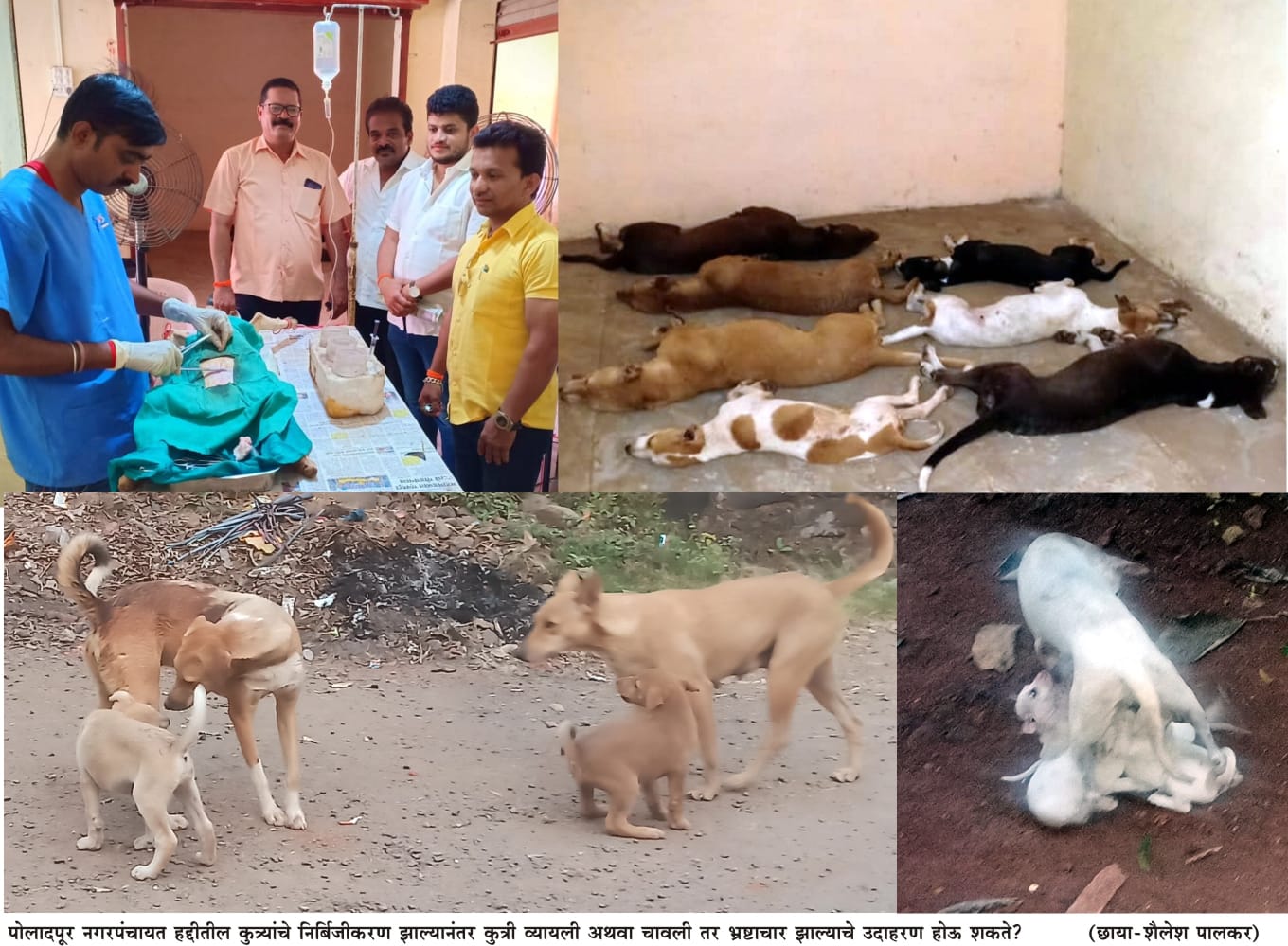 पोलादपूर शहरातील कुत्र्यांच्या निर्बिजीकरणाच्या मोहिमेची पाहणी तत्कालीन नगराध्यक्ष निलेश सुतार, तत्कालीन उपनगराध्यक्ष सिध्देश शेठ, माजी शहरप्रमुख सुरेश पवार, ज्ञानदेव पार्टे आदींनी करून पशूवैद्यकीय उपचारतज्ज्ञ सचिन देऊळकर यांच्या सोसायटी ऑफ ऍनिमल प्रोटेक्शन या संस्थेच्या कामाची पाहणी केली होती. मात्र, त्यानंतर एका माहिती अधिकाराच्या कार्यकर्त्याने माहितीच्या अधिकारामध्ये मागितलेल्या माहितीनुसार पोलादपूर ग्रामीण रूग्णालयामध्ये 2019 मध्ये 83 जणांना श्वान दंश झाला तर 2020 मध्ये 94 जणांना श्वानदंश झाल्याची माहिती प्राप्त झाली आहे. याखेरिज, पोलादपूर शहरातील आनंदनगर, भैरवनाथनगर तसेच अन्य भागामध्ये अनेक मादी कुत्र्यांनी पिल्ले जन्माला घातल्याची दृश्यं रस्त्यावर पाहायला मिळाल्याने श्वानदंशापासून सुटकेसाठीची कुत्र्यांच्या निर्बिजीकरणाची मोहिम निष्फळ ठरली आहे अथवा कसे, असा सवाल निर्माण झाला असून याप्रकरणी कुत्री व्यायली अथवा चावली तर भ्रष्टाचार होतो अथवा कसे, याबाबत नगरपंचायत पोलादपूरच्या प्रशासनाने उत्तर देण्याची गरज निर्माण झाली आहे.