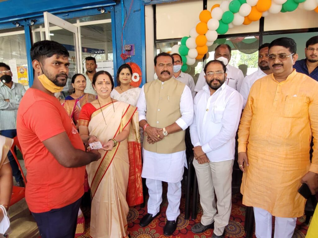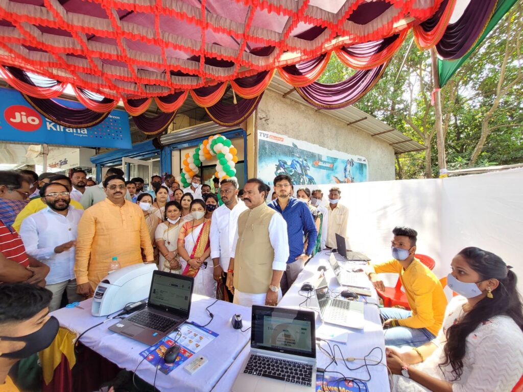 जिल्हाध्यक्ष महेंद्रशेठ घरत यांच्या हस्ते ई – श्रम केंद्राचे उद्घाटन