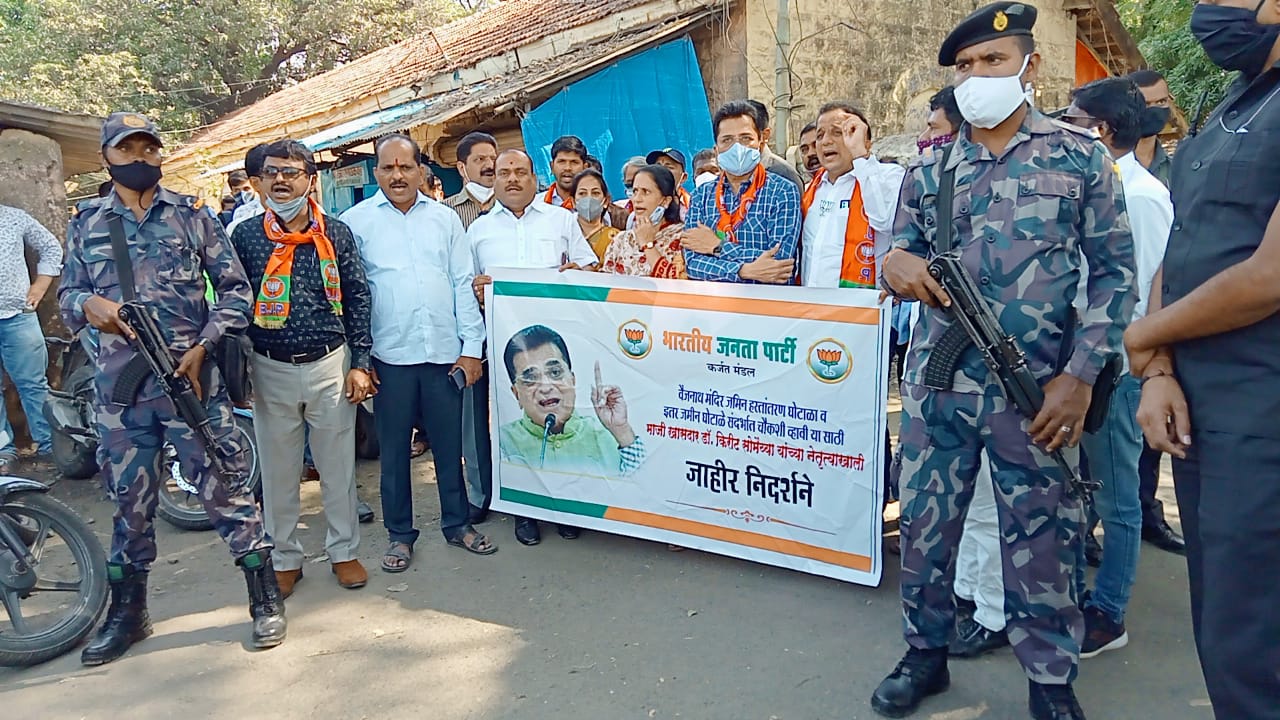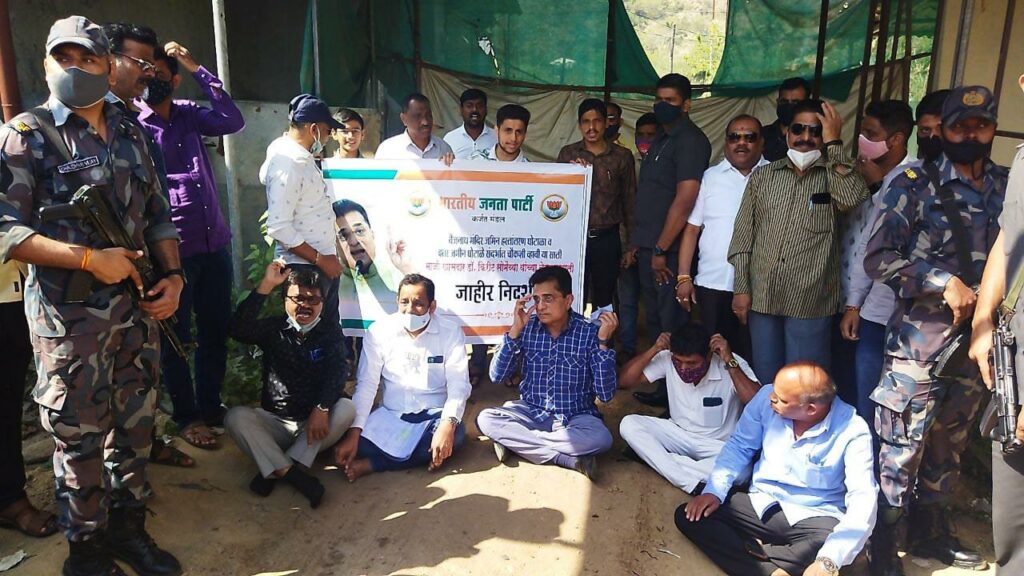 भाजप नेते माजी खासदार डॉ. किरीट सोमय्या यांच्या नेतृत्वाखाली कर्जत तालुक्यातील किरवली येथील डी मार्ट समोर तीव्र निदर्शने करण्यात करण्यात आली, तसेच धरणे आंदोलन ही करण्यात आली यावेळी जमीन आमच्या देवाची आहे, नाही कुणाच्या बापाची, वैजनाथ जमिन घोटाळा चौकशी झालीच पाहिजे, अश्या घोषणा देण्यात आल्या व या सर्व प्रकरणाची सखोल चौकशी व्हावी असे निवेदन तहसीलदार विक्रम देशमुख यांना देण्यात आले.