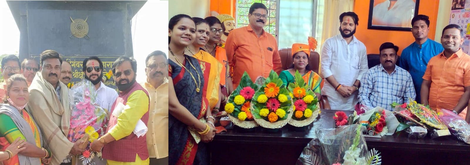 शिवसेनेतर्फे राजिप सदस्य चंद्रकांत कळंबे, तालुकाप्रमुख निलेश अहिरे, शहरप्रमुख प्रकाश गायकवाड, शहरप्रमुख सुरेश पवार, माजी नगराध्यक्षा अश्विनी गांधी, माजी नगराध्यक्ष निलेश सुतार, माजी उपनगराध्यक्ष उमेश पवार हे उपस्थित होते. नगराध्यक्षा सोनल गायकवाड आणि उपनगराध्यक्ष नागेश पवार यांचे अभिनंदन महाडचे आमदार भरतशेठ गोगावले यांनी छ.शिवाजी महाराज यांच्या पुर्णाकृती पुतळयाला अभिवादन करून केले.