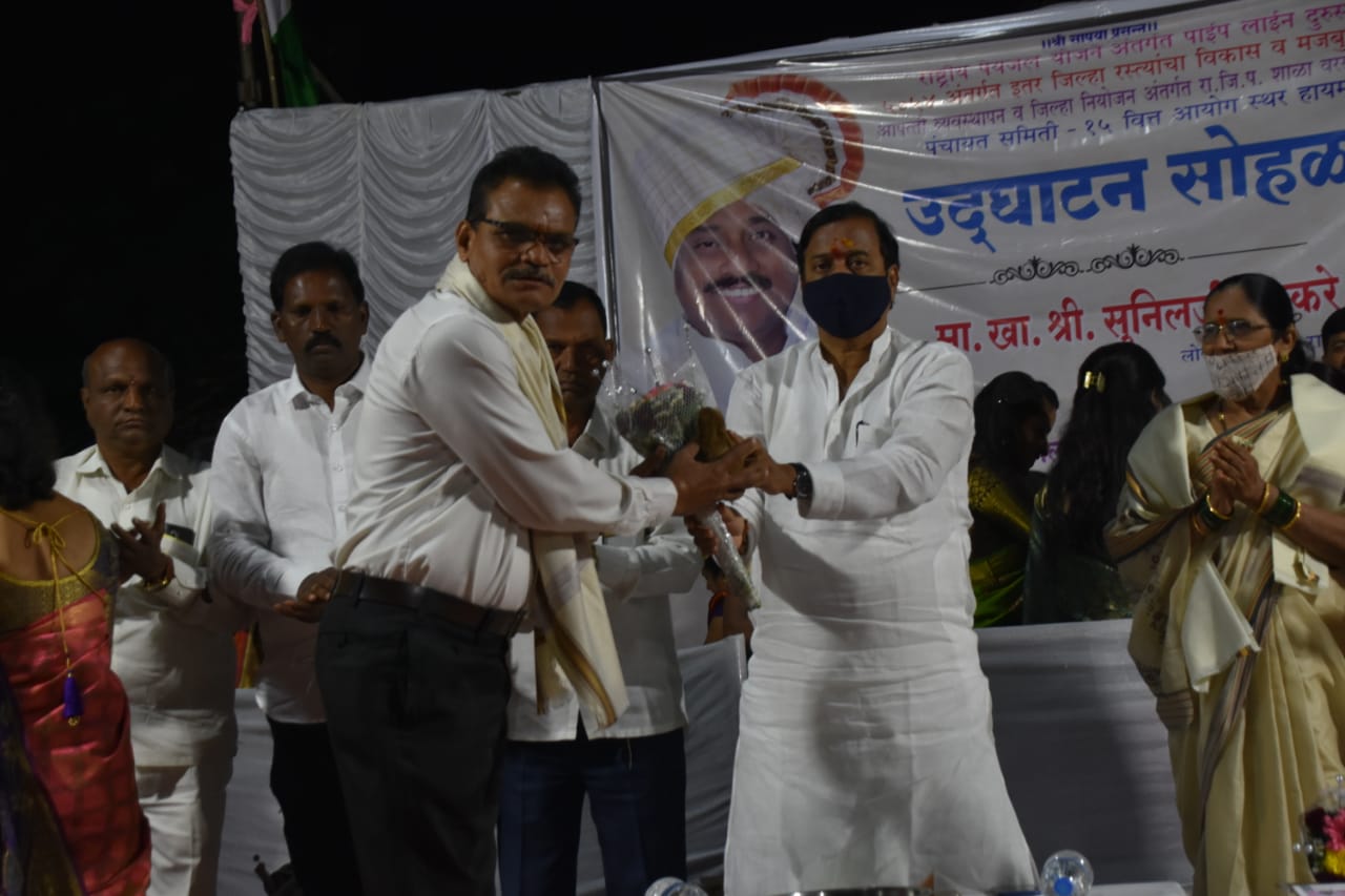 जेष्ठ नेते प्रकाश थिटे,नारायण धनवी,बाबूराव बामणे, तालुका महिला अध्यक्ष प्रितम पाटील,,जि.प.गट अध्यक्ष नरेंद्र जाधव, पं.स.गण अध्यक्ष मनोज शिर्के,राकेश शिंदे,संजय राजिवले,पंचक्रोशीतील सर्व सरपंच यांच्या उपस्थितीत संपन्न झाला.