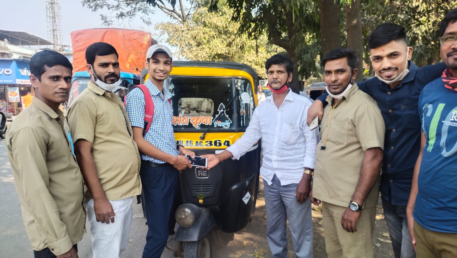यासाठी रिक्षाचालकांनी मोबाईल स्वराज माळी यास सापडण्यासाठी मदत केली.संघटनेच्यावतीने विनोद शर्मा यांच्या प्रामाणिकपणाचे कौतुक करुन त्याचा सत्कार करण्यात आला.रिक्षाचालक विनोद शर्मा यांचे संघटनेचे सल्लागार फुलचंद लोंढे यांनी कौतुक केले.