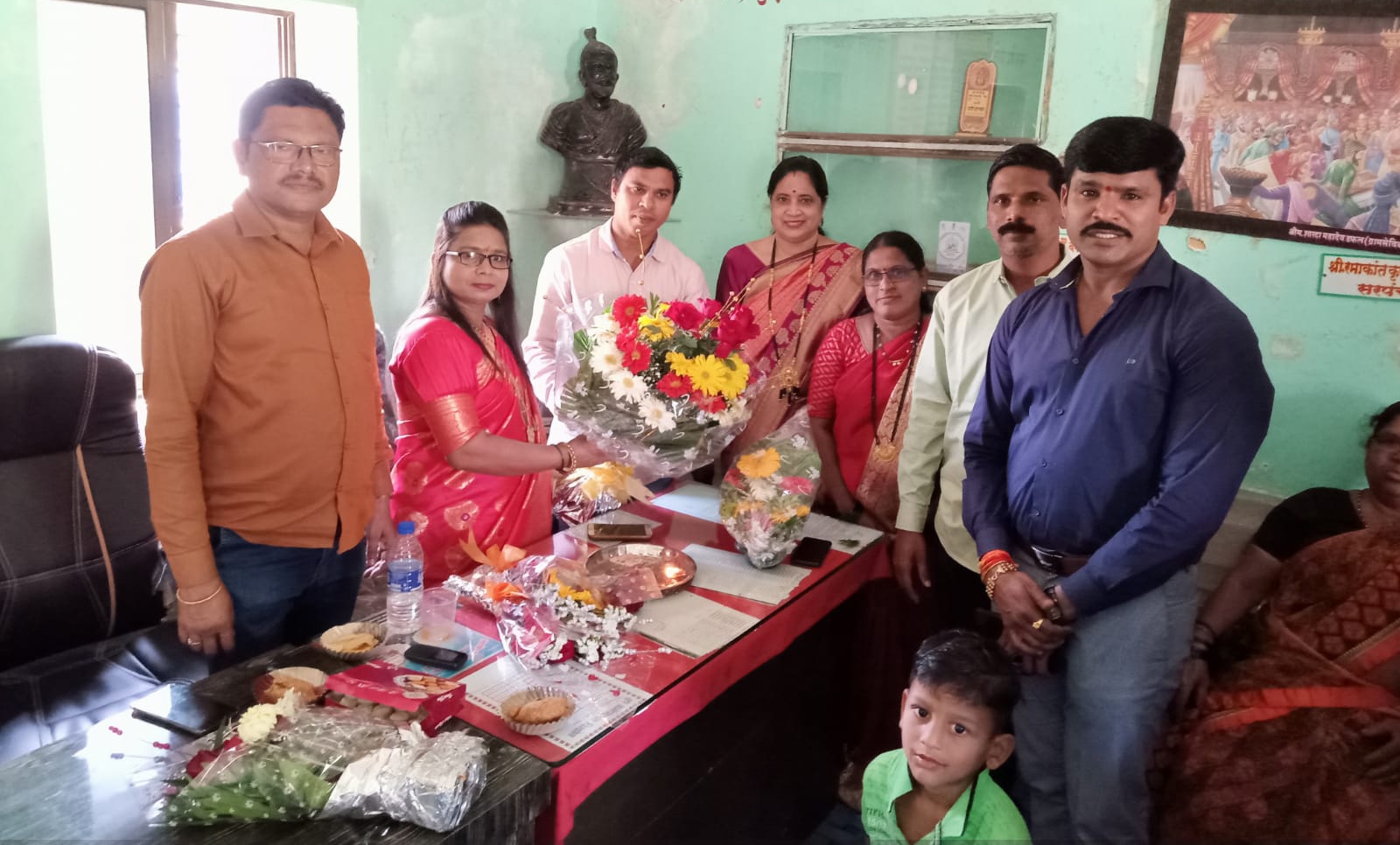 उपसरपंचपदी काँग्रेसच्या सौ. अस्मिता राकेश गांवड यांची निवड होताच त्यांचे अभिनंदन व पुढील वाटचालीसाठी शुभेच्छा देण्यासाठी उरण तालुका काँग्रेस कमिटीचे अध्यक्ष विनोद म्हात्रे, जिल्हा परिषद सदस्य विजय भोईर, उरण तालुका काँग्रेस महिला अध्यक्षा सौ रेखा घरत, संरपच रमाकांत जोशी, उपाध्यक्षा सौ. निर्मला पाटील, माजी उपसरपंच सौ. दिपाली पाटील, सौ. वर्षाताई पाटील, सौ. दर्शना म्हात्रे, जेष्ठ कार्यकर्ते मनोहर गावंड, सौ. अरुणा गावंड,सौअरुणा पाटील,सौ मिनाक्षी गावंड,सौ स्वाती म्हात्रे, शकुंतला म्हात्रे, काशीनाथ गावंड, अरूण पाटील, बाळकृष्ण म्हात्रे, कोप्रोली अध्यक्ष विवेक म्हात्रे, महेंद्र पाटील, गजानन पाटील, विनायक गावंड, मंगेश म्हात्रे, नामदेव गावंड, संतोष गावंड,यतीश गावंड, रमेश गावंड, प्रताप गावंड आदी उपस्थित होते.