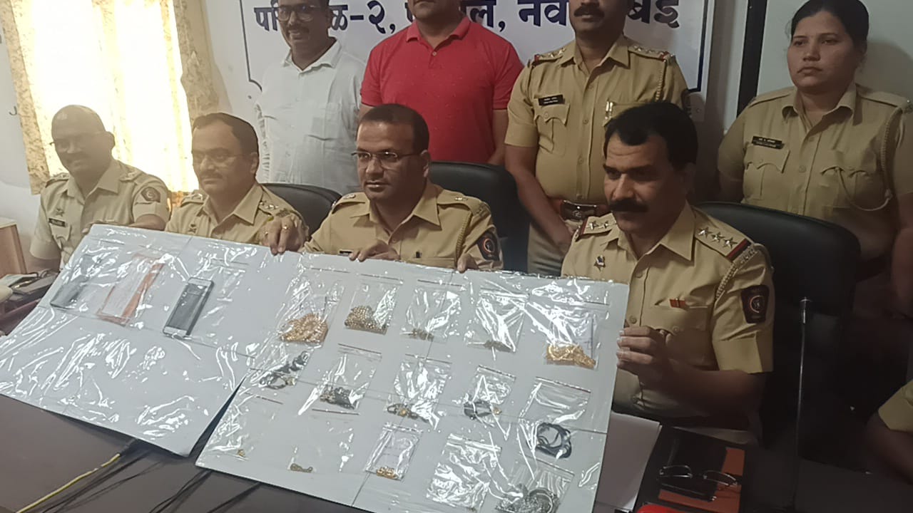 खारघर पोलीस ठाणे हद्दीत फिर्यादी नामे श्रीमती लिला चंतुरी गौडा , वय 36 वर्षे , यांनी घरकामास ठेवलेले महिलेने फिर्यादी यांचे घराचे कपाटातील लॉकरमध्ये असलेले सोन्याचे दागिने चोरी केल्याने फिर्यादी यांनी दिलेल्या तक्रारीवरून खारघर पोलीस ठाणे येथे गुन्हा दाखल करण्यात आला होता. वर नमुद गुन्हयातील आरोपीताबाबत कोणताही ठोस पुरावा नसताना कौशल्यपुर्वक तांत्रिक तपास करुन यातील महिला आरोपी निता श्याम गर्जे वय 27 वर्षे हिस बिड , कात्रज पुणे येथे जावुन मागोवा घेवुन सदर आरोपी महिलेस अटक करण्यात आली. तिचेकडुन 36 99 50 / -रू किं . सोन्याचे चोरी केलेले दागिने जप्त करण्यात आले आहेत.