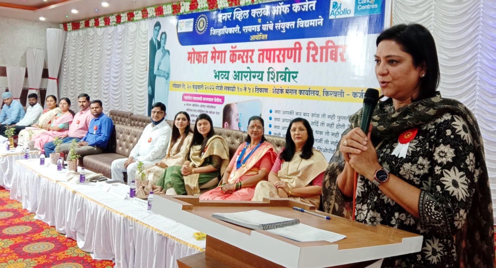 इनरव्हील क्लब ऑफ कर्जत आणि जिल्हाधिकारी कार्यालय यांच्या विद्यमाने नर्गिस दत्त फाउंडेशन आणि अपोलो कॅन्सर सेंटर यांच्या सहकार्याने कर्जत मध्ये मोफत मेघा कॅन्सर तपासणी शिबिराचे आयोजन किरवली येथील शेळके मंगल कार्यालयात करण्यात आले होते. शिबिराचे उदघाटन नर्गिस दत्त फाऊंडेशच्या प्रिया दत्त यांच्या हस्ते करण्यात आले.