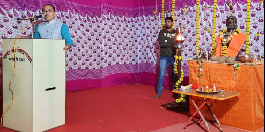 शिवाजी महाराजांची स्मृती जागवायची असेल तर प्रथम आपल्या भाषेचा आपणास अभिमान हवा.आपली संस्कृती जाणून घेण्यासाठी इतिहास शिकायला हवा.शिवाजी या नावातच शिका,वागा व जग जिंका,असे अभिप्रेत आहे.मराठी माणसाने प्रथम शिवाजी महाराजांचे चरित्र समजून घ्यायला पाहिजे व आपल्या जीवनाचे उद्दिष्ट ठरवले पाहिजे. जगभरातील ज्ञानाचा आणि प्रवासाचा अनुभव घेऊन आपल्या मुलांना जगण्याचा चांगला दृष्टिकोन द्यायला हवा.दरम्यान गावातून व इतर परिसरातून असंख्य शिवभक्त याठिकाणी व्याख्यान ऐकावयास उपस्थित होते.
