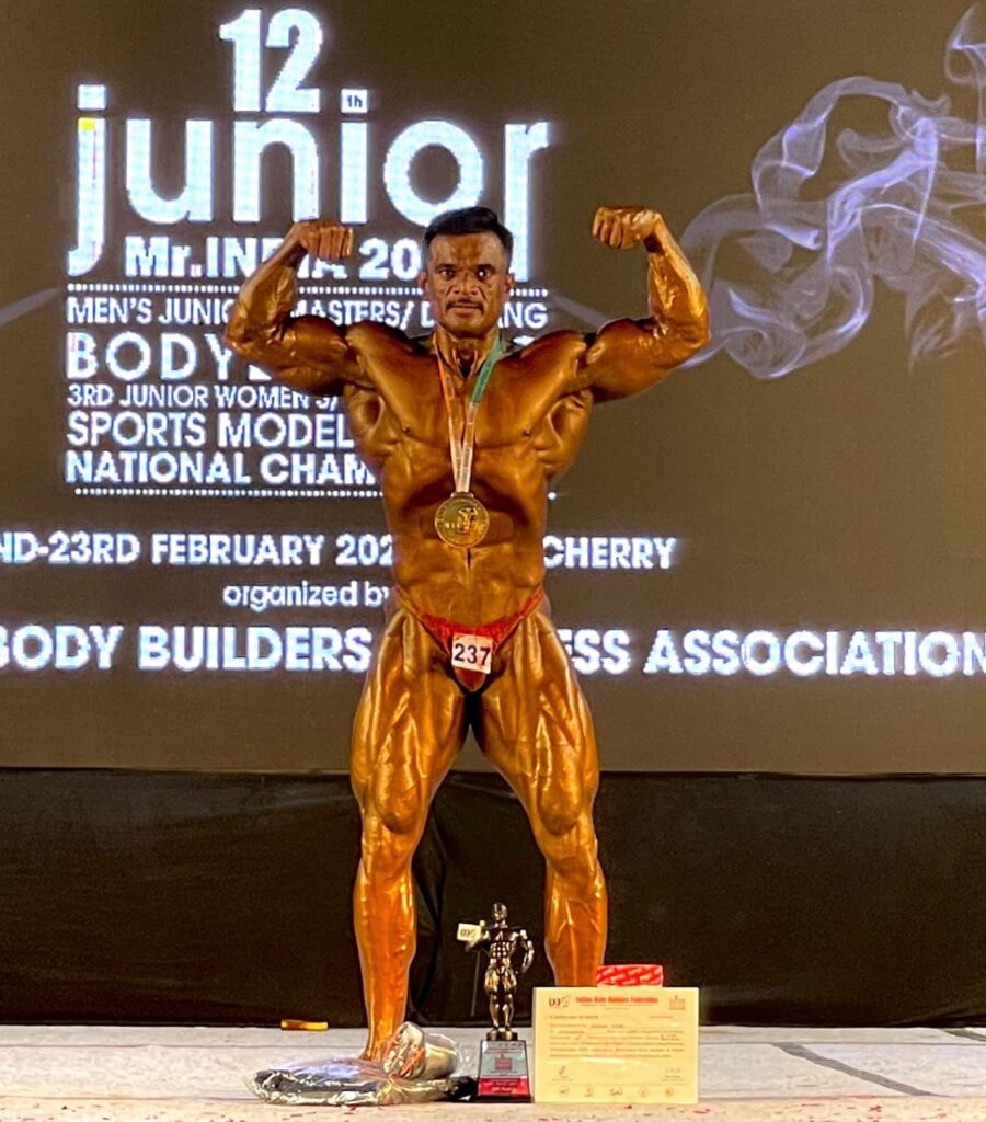 इंडियन बॉडीबिल्डींग फेडरेशन यांच्यावतीने पॉंडेचरी तामिळनाडू या ठिकाणी २२ – २३ फेब्रू २०२२ रोजी आयोजित करण्यात आलेल्या “मास्टर भारत श्री २०२२” या शरीरसौष्ठव स्पर्धेमध्ये महामार्ग पाेलिस केंद्र पळस्पेचे प्रभारी अधिकारी सहायक पोलिस निरीक्षक सुभाष पुजारी यांनी ८० किलो वरील गटामध्ये सुवर्णपदक पटकाविले आणि गौरवाची बाब म्हणजे हा किताब त्यांनी सलग दुसऱ्यांदा पटकाविला.
