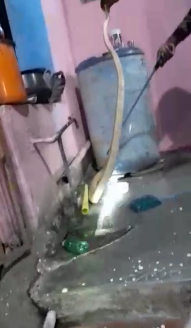 पाणदिवे गावात हेमंत ठाकूर यांच्या घरात घुसला कोब्रा जातीचा साडेसाहा फुटी साप