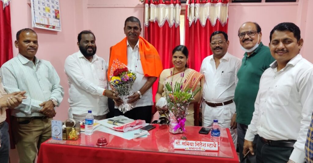 माजी आमदार मनोहरशेठ भोईर यांनी सभापती सौ समिधा म्हात्रे व नवनिर्वाचित उपसभापती हिराजी घरत यांना भगवी शाल व पुष्पगुच्छ देऊन पुढील कार्यास शुभेच्छा दिल्या व येणाऱ्या प्रत्येक निवडणूकीत महाविकास आघाडीसाठी हिराजी घरत यांची निवड ही विजयाची नांदी आहे असा विश्वास व्यक्त केला.