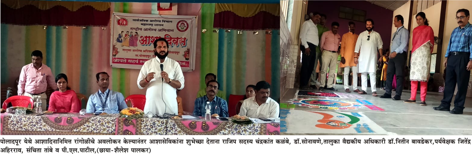 यावेळी जागतिक क्षयरोग दिन येत्या 24 मार्चरोजी असल्याने संयुक्त कार्यक्रम करण्यात आला. यावेळी तालुका पर्यवेक्षक जितेंद्र अहिरराव यांनी आशा सेविकांना क्षयरूग्ण शोधून त्याची नोंद तातडीने करण्यासंदर्भात सामुदायिक शपथ दिली. रायगड जिल्हा परिषदेचे सदस्य चंद्रकांत कळंबे यांनी रांगोळी स्पर्धेतील कलाकृतींचे अवलोकन करून कौतुक केले. यावेळी नम्रता विश्वनाथ चव्हाण , हर्षदा हरिश्चंद्र भिलारे व रेश्मा कोंडीराम जाधव यांच्या रांगोळी कलाकृती पहिल्या तीन क्रमांकांच्या मानकरी ठरल्या. यावेळी आयोजित करण्यात आलेल्या वत्तृफ्त्व स्पर्धेमध्ये संगिता मोरे कोंढवी या आशासेविका सर्वप्रथम आल्या तर द्वितीय क्रमांक हर्षदा भिलारे व प्राजक्ता मोहिते यांना विभागून देण्यात आला. तिसऱ्या क्रमांकाच्या मानकरी अनिता रमेश मोरे ठरल्या.